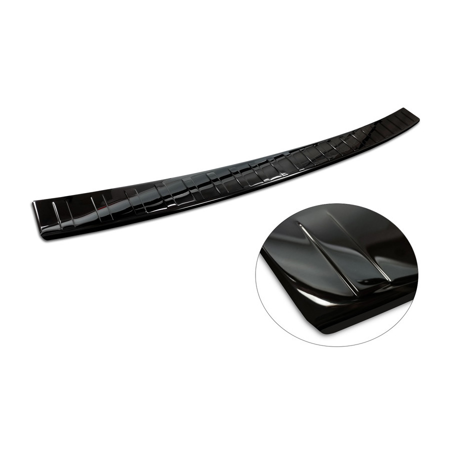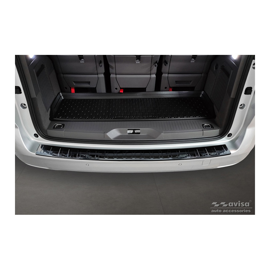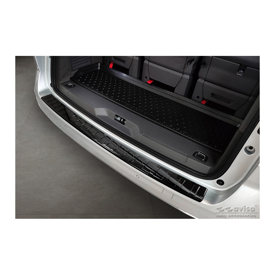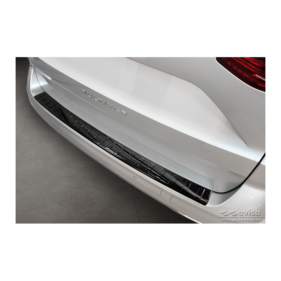 Black-Chrome Stainless Steel Rear Bumper Protector for the Volkswagen Multivan T7 2021 - 'Ribs'. Provide optimal protection against daily wear and tear on the top of the rear bumper. This part of the car is particularly susceptible to damage from loading and unloading. Repair and repainting costs are high, and the value of your car can decrease.