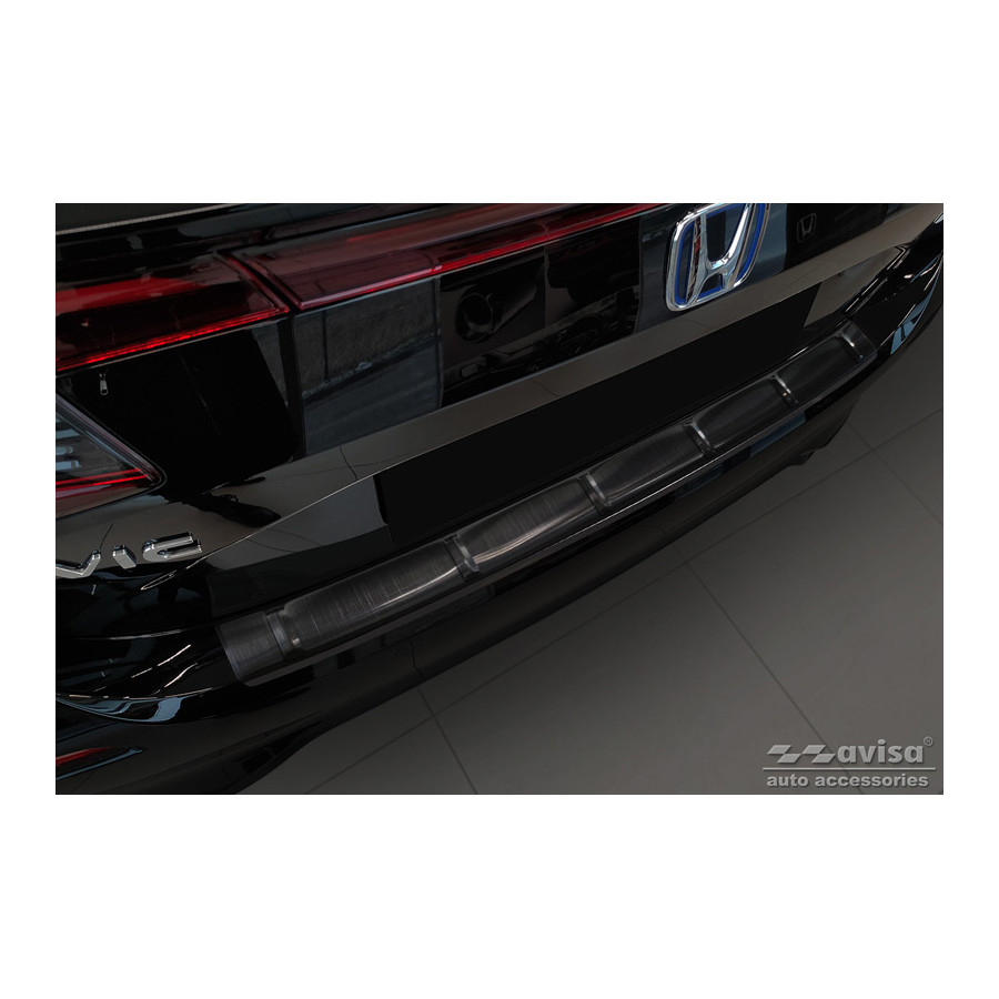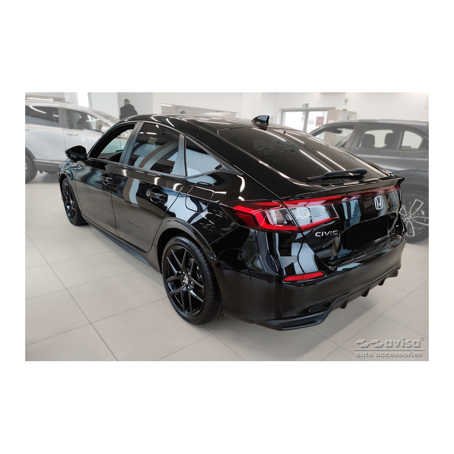 Black Stainless Steel Rear Bumper Protector Fits Honda Civic XI HB 2022- 'Ribs'Provide optimal protection against daily wear and tear on the top of the rear bumper. This part of the car is very sensitive to damage from loading and unloading items. Repair and repainting costs are high, and the value of your car can decrease.