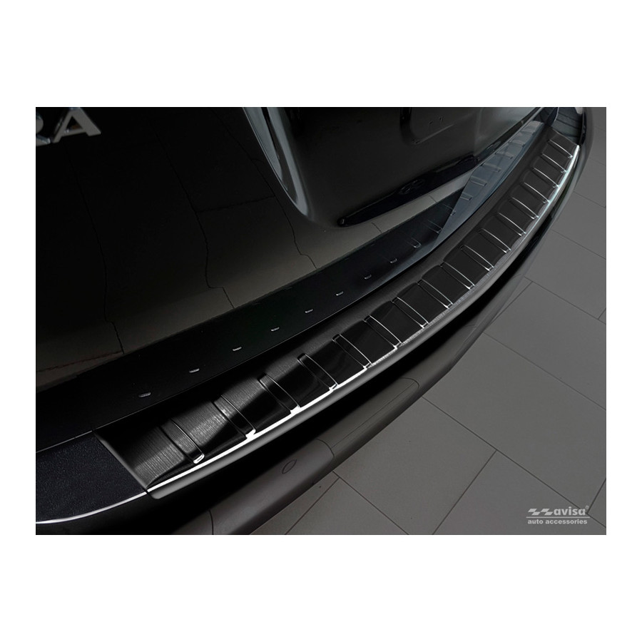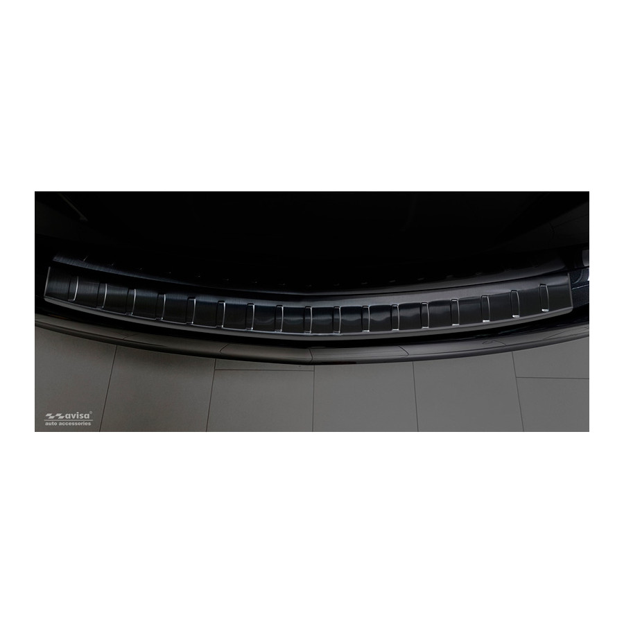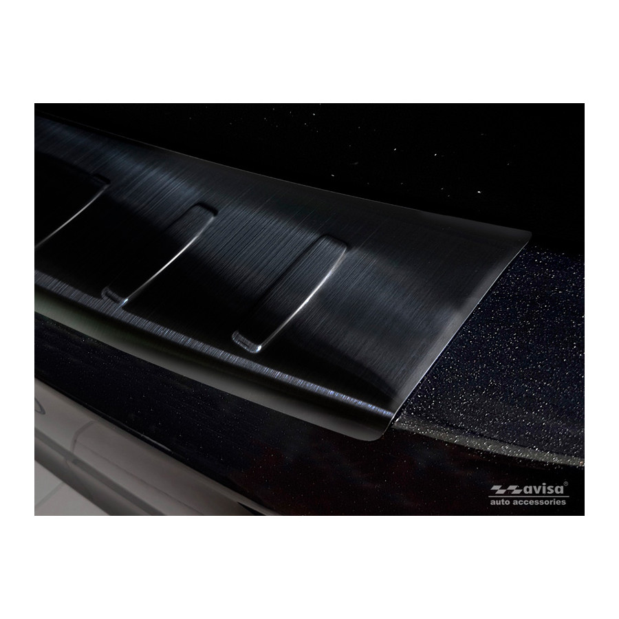 Opel Zafira C Tourer 2012-2016 & Facelift 2016- "Ribs" Black stainless steel (powder-coated) rear bumper protector prevents damage to your car. Most cars are equipped with a painted rear bumper molding. For example, when loading items into the car, the top of the rear bumper is easily scratched. The rear bumper is very susceptible to damage, and repair and respray costs are high.