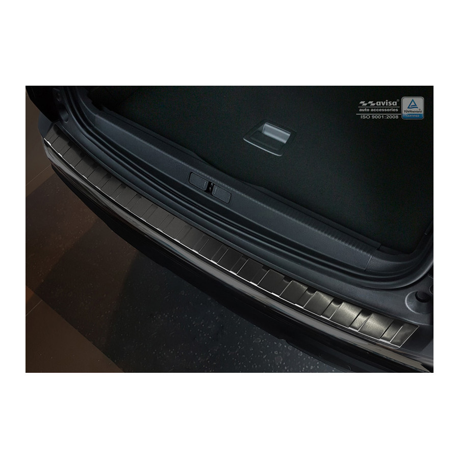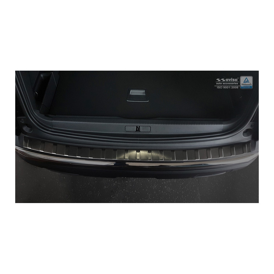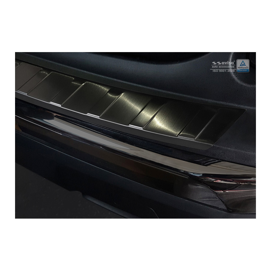 Peugeot 3008 II 2016 - Black stainless steel (powder-coated) rear bumper protector prevents damage to your car. Most cars are equipped with a painted rear bumper molding. For example, when loading items into the car, the top of the rear bumper is easily scratched. The rear bumper is very susceptible to damage, and repair and respray costs are high.