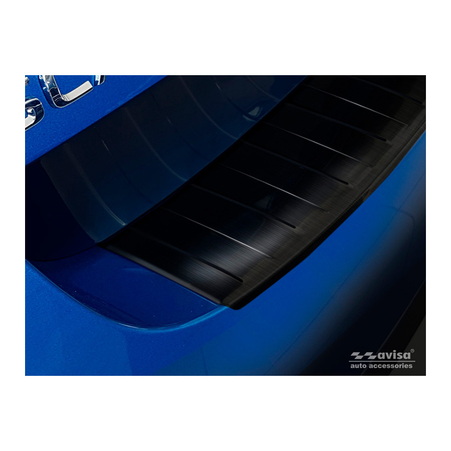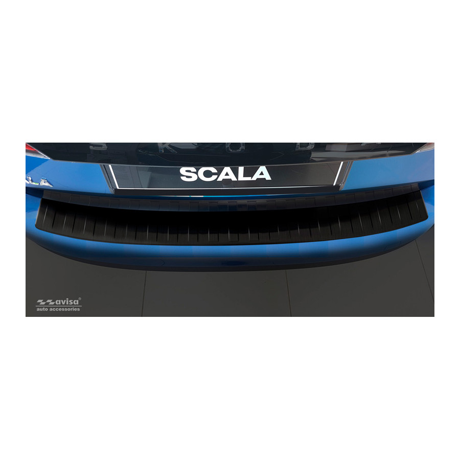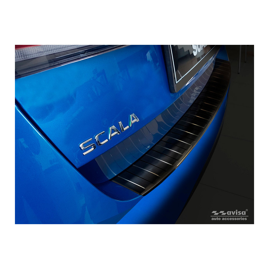 Skoda Scala 2019 - 'Ribs' Black stainless steel (powder-coated) rear bumper protector prevents damage to your car. Most cars are equipped with a painted rear bumper molding. For example, when loading items into the car, the top of the rear bumper is easily scratched. The rear bumper is very susceptible to damage, and repair and respray costs are high.