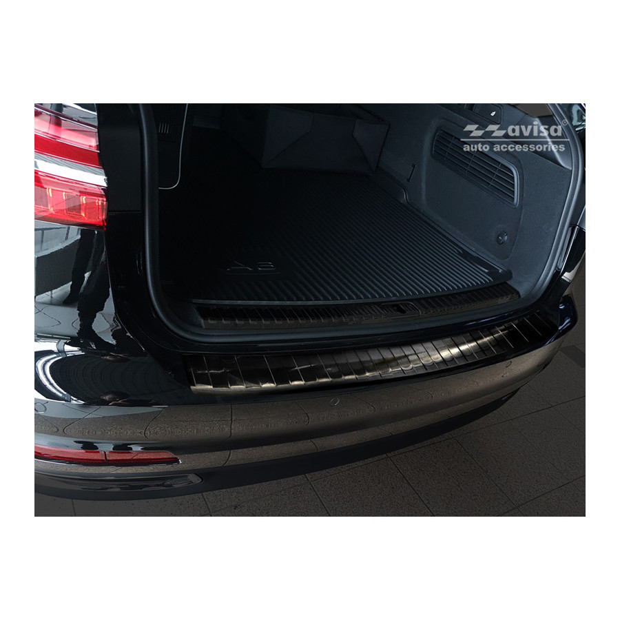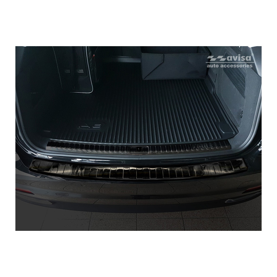 Audi A6 (C8) Avant 2018- Black stainless steel (powder-coated) rear bumper protector prevents damage to your car. Most cars are equipped with a painted rear bumper molding. For example, when loading items into the car, the top of the rear bumper is easily scratched. The rear bumper is very susceptible to damage, and repair and respray costs are high.