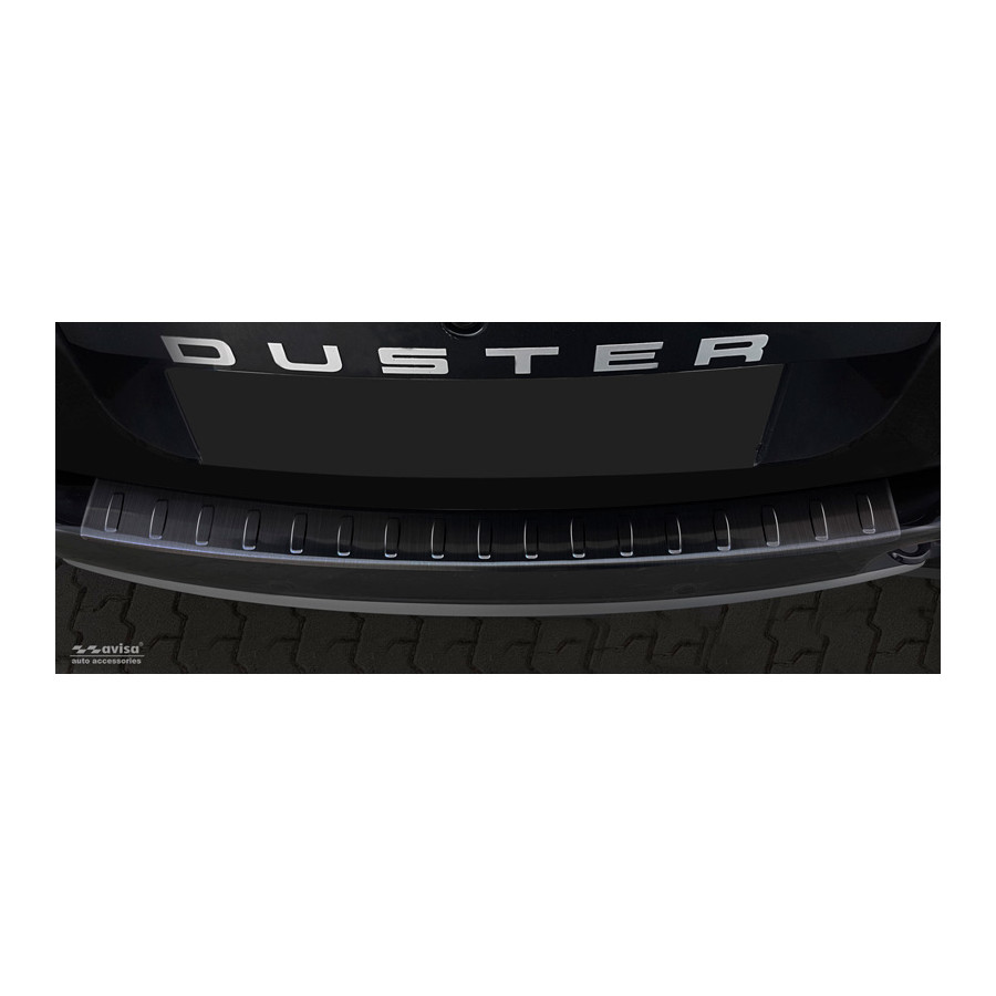 The Dacia Duster 2010-2017 "Ribs" Black stainless steel (powder-coated) rear bumper protector prevents damage to your car. Most cars are equipped with a painted rear bumper molding. For example, when loading items into the car, the top of the rear bumper is easily scratched. The rear bumper is very susceptible to damage, and repair and respray costs are high.