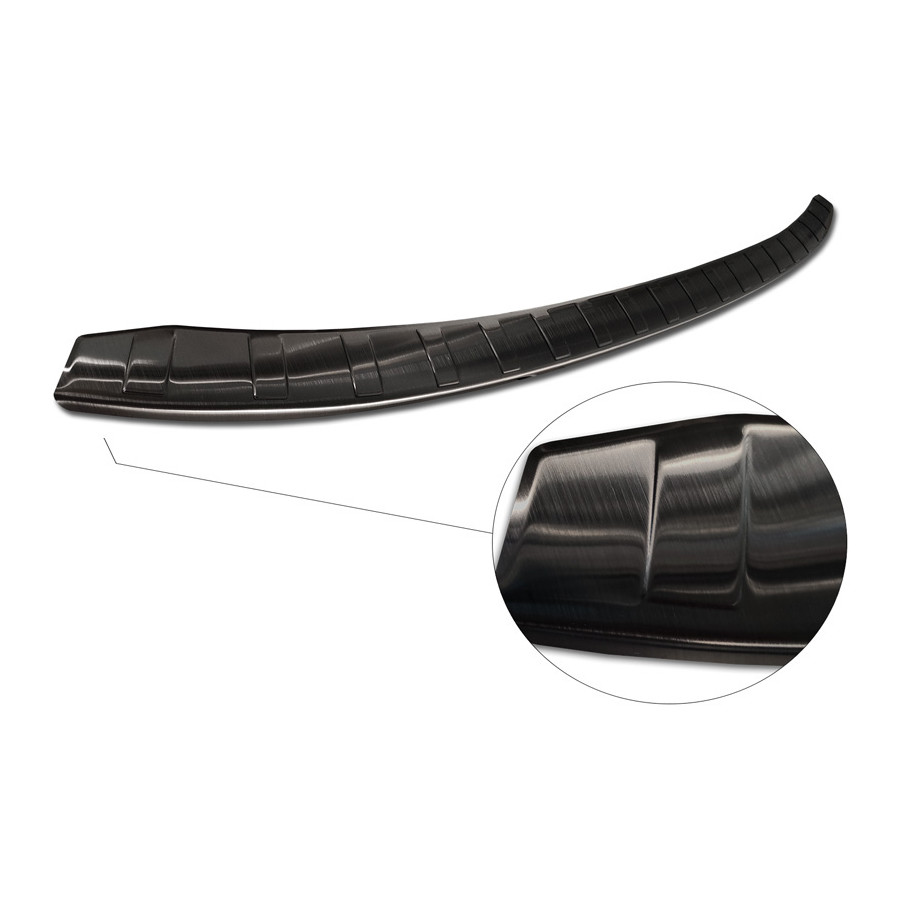 Black stainless steel rear bumper protector BMW i3 (i01) Facelift 2017- 'Ribs'. Provide optimal protection against daily wear and tear on the top of the rear bumper. This part of the car is very susceptible to damage from loading and unloading. Repair and repainting costs are high, and the value of your car can decrease.