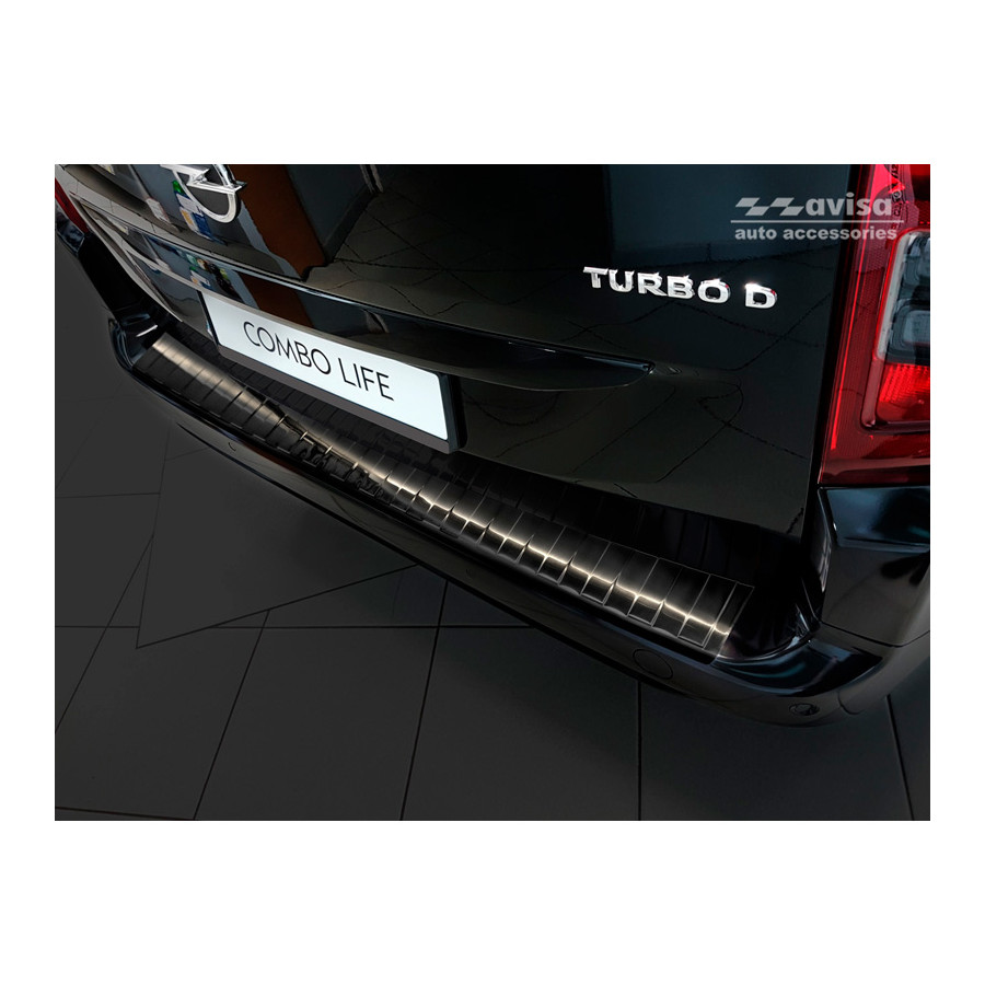 Black Stainless Steel Rear Bumper Protector Citroën Berlingo (Multispace) & Peugeot Partner 2008-2015 & 2015-2018 & 2018- & Peugeot Rifter 2018- & Opel Combo E Life 2018- & Toyota Proace City/Verso 2019-Provide optimum protection against daily wear and tear on the top of your rear bumper. This part of your car is very susceptible to damage from loading and unloading. Repair and respraying costs are high, and the value of your car can decrease.