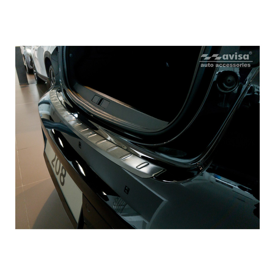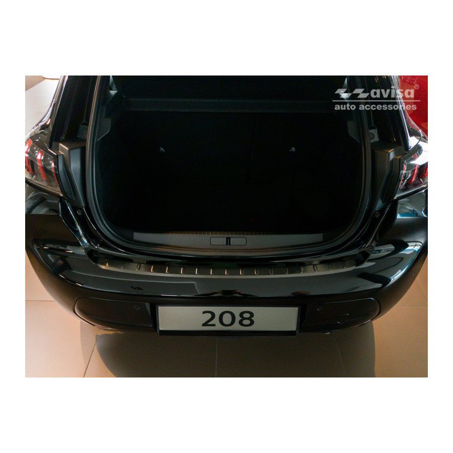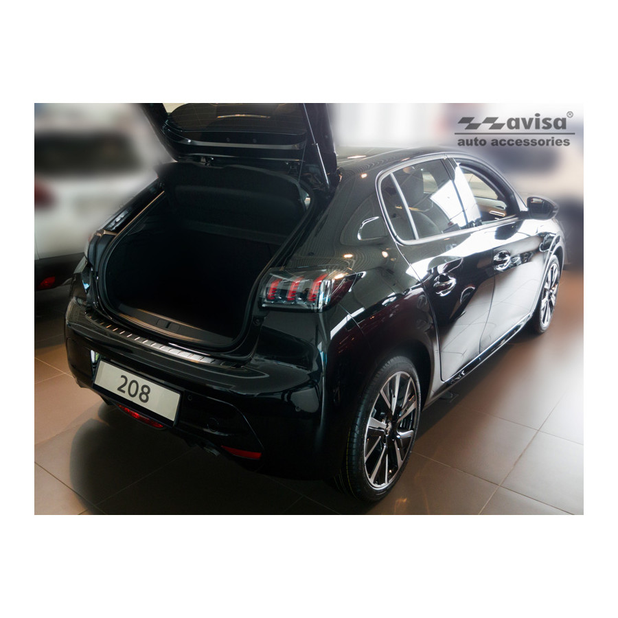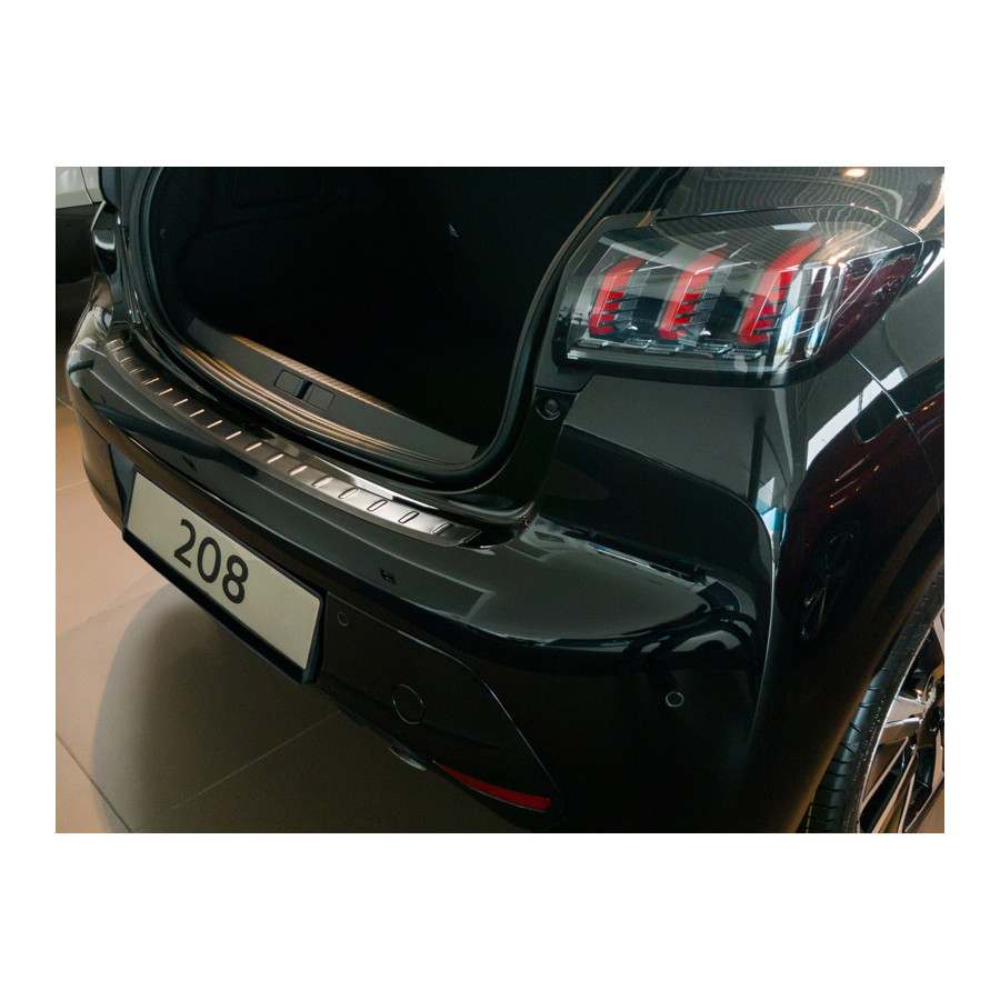 Black stainless steel rear bumper protector suitable for Peugeot 208 II HB 5-door 2019- 'Ribs'. Provide optimal protection against daily wear and tear on the top of the rear bumper. This part of the car is particularly susceptible to damage from loading and unloading. Repair and repainting costs are high, and the value of your car can decrease.