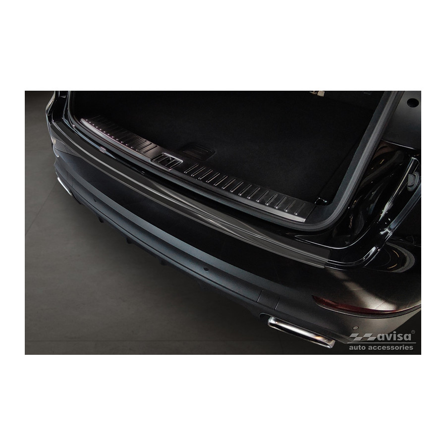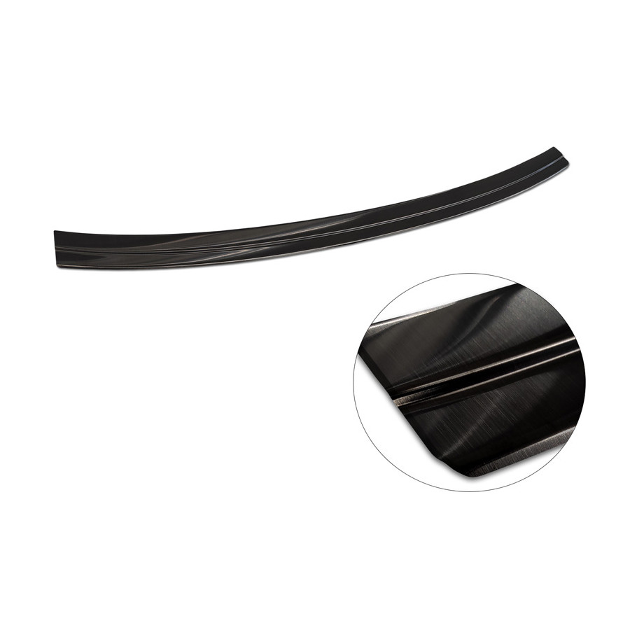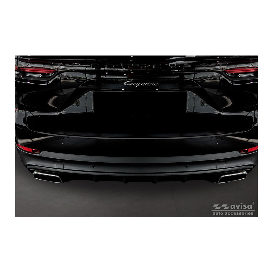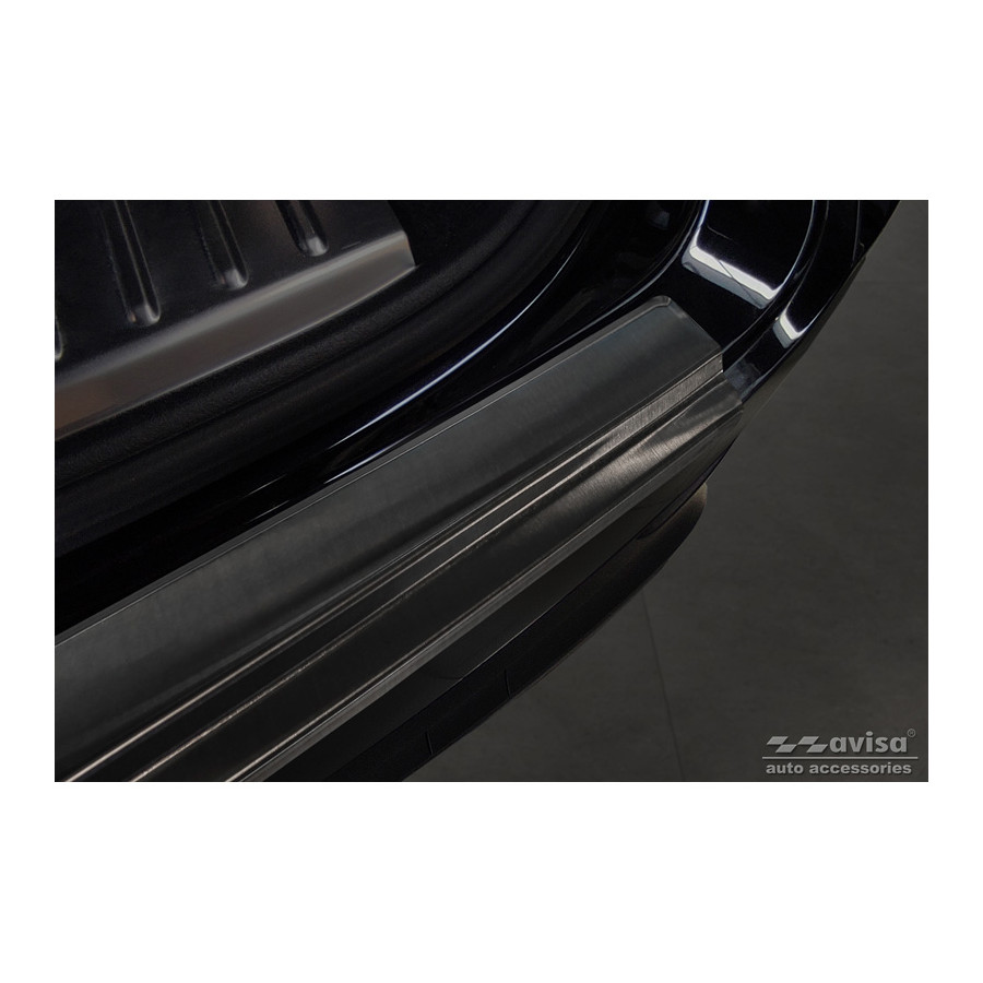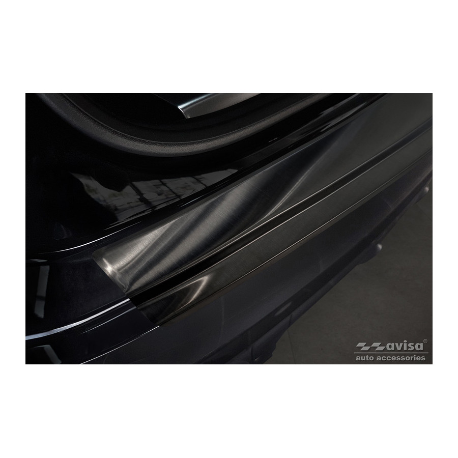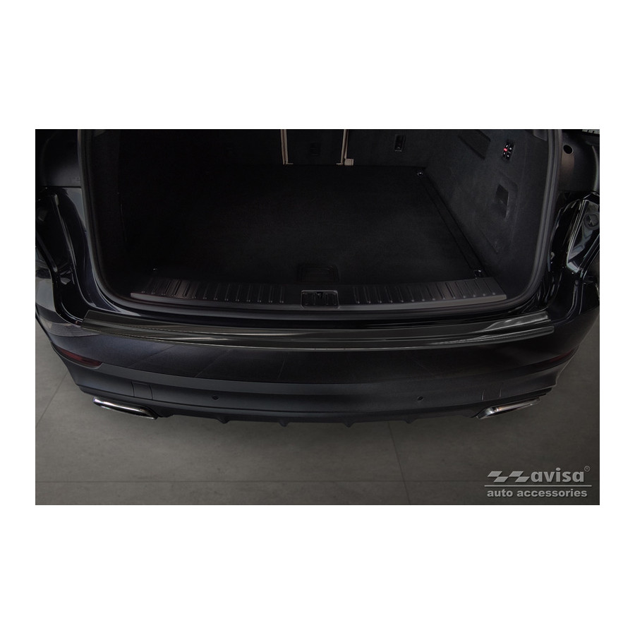 Black stainless steel rear bumper protector suitable for the 2017 Porsche Cayenne III. Provides optimal protection against daily wear and tear on the top of the rear bumper. This part of the car is particularly susceptible to damage from loading and unloading. Repair and repainting costs are high, and the value of your car can decrease.