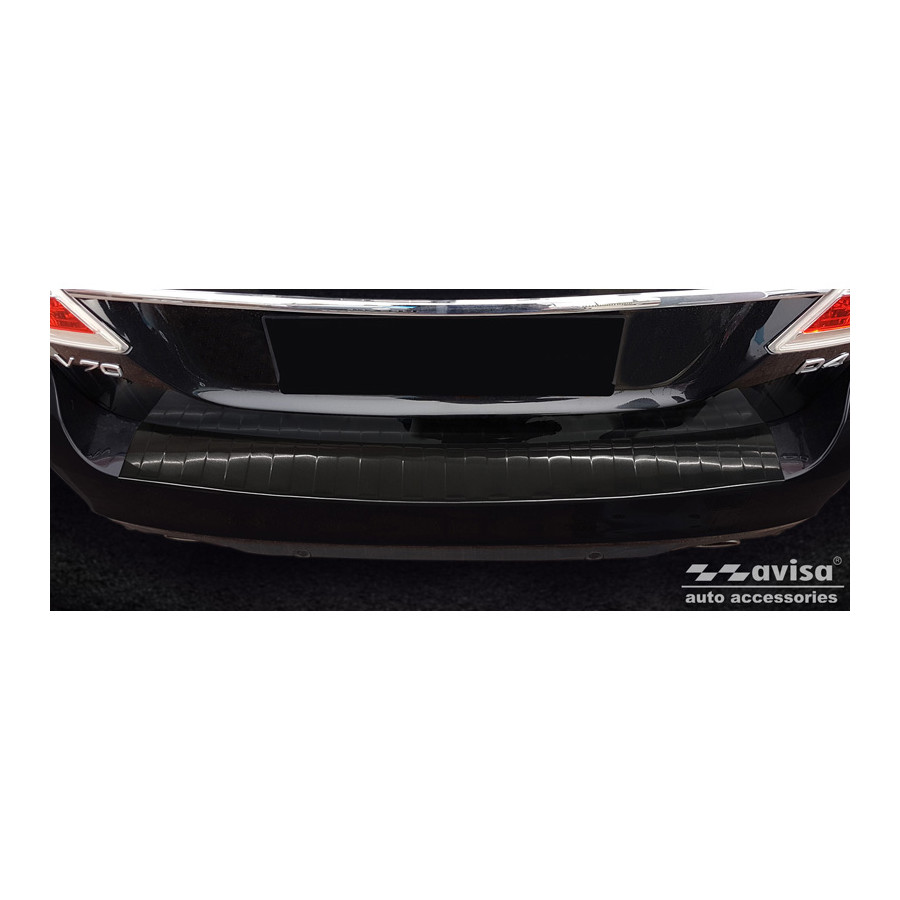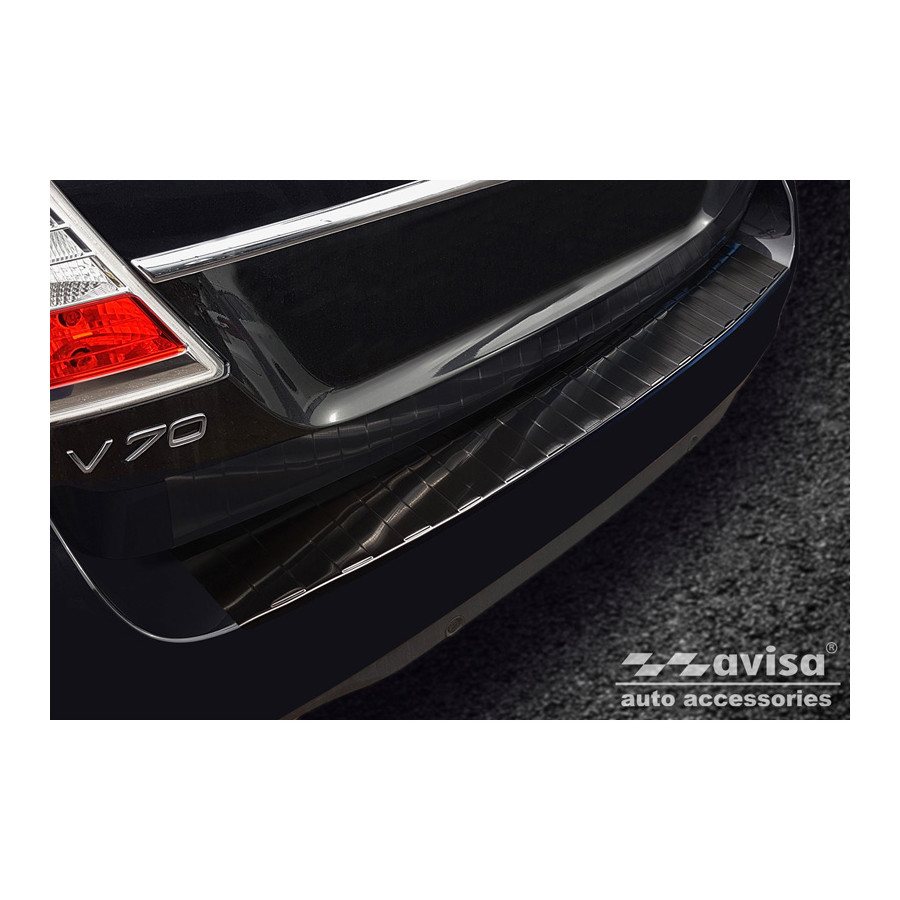 Black stainless steel rear bumper protector suitable for Volvo V70 Facelift 2013-2016 'Ribs'. Provide optimal protection against daily wear and tear on the top of the rear bumper. This part of the car is particularly susceptible to damage from loading and unloading. Repair and repainting costs are high, and the value of your car can decrease.