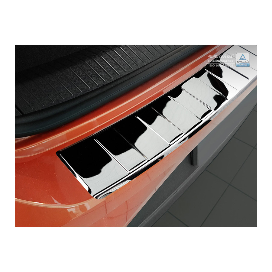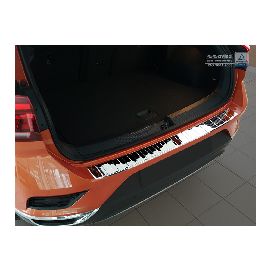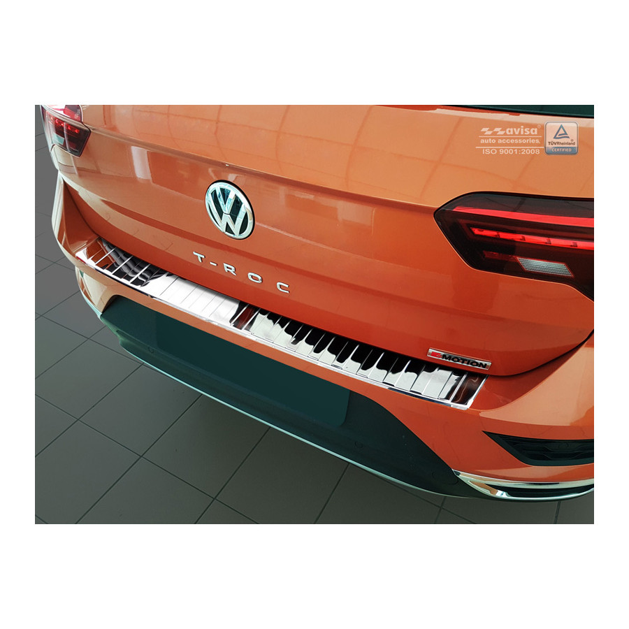 Volkswagen T-Roc 11/2017 - Chrome stainless steel (powder-coated) rear bumper protector prevents damage to your car. Most cars are equipped with a painted rear bumper molding. For example, when loading items into the car, the top of the rear bumper is easily scratched. The rear bumper is very susceptible to damage, and repair and respray costs are high.