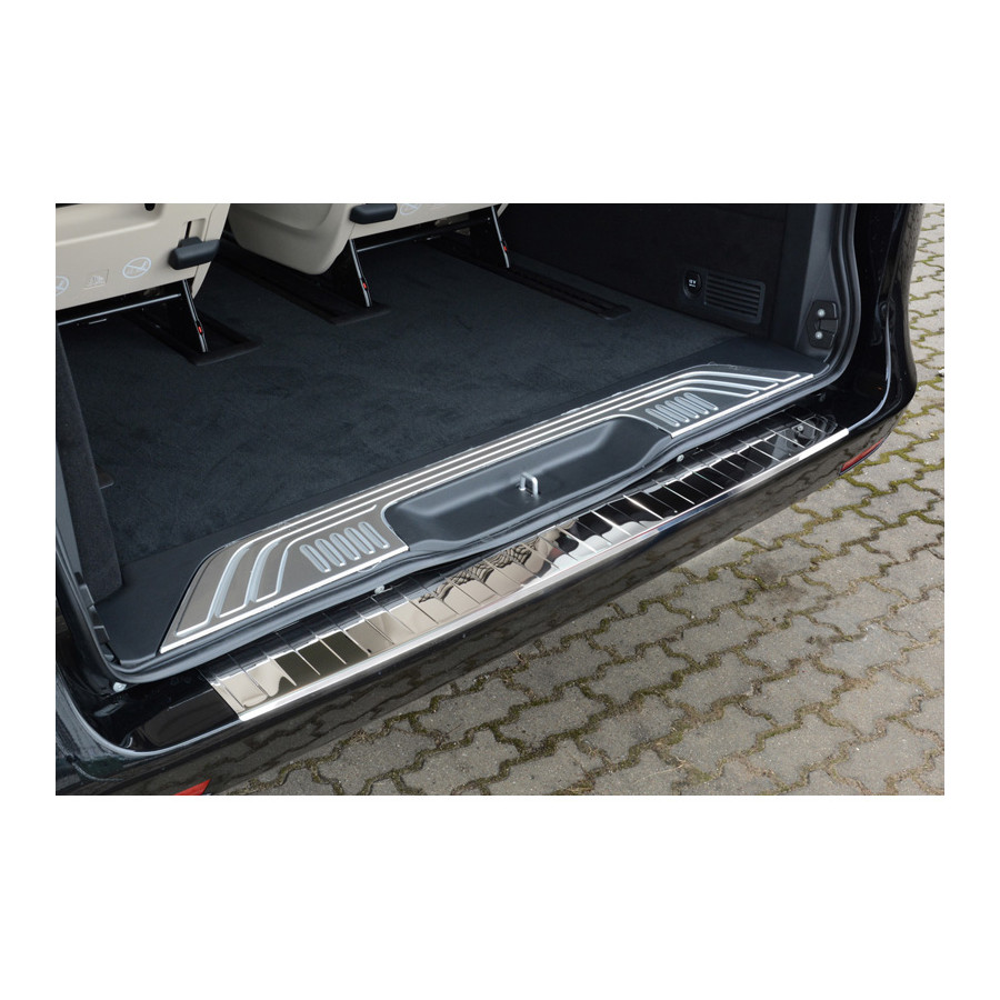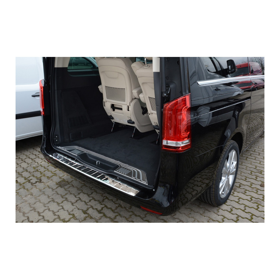Mercedes Vito / V-Class 2014- Chrome stainless steel (powder-coated) rear bumper protector prevents damage to your car. Most cars are equipped with a painted rear bumper molding. For example, when loading items into the car, the top of the rear bumper is easily scratched. The rear bumper is very susceptible to damage, and repair and respray costs are high.