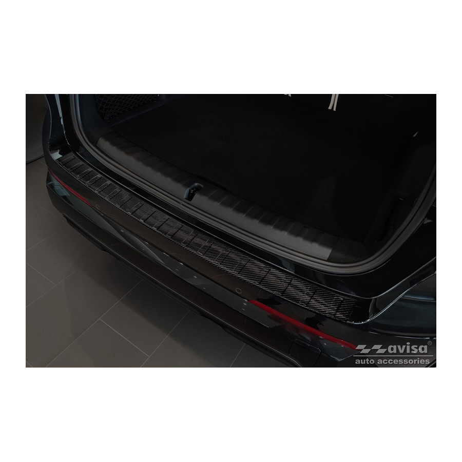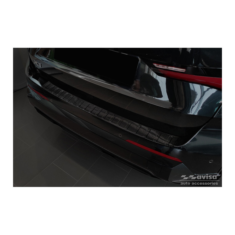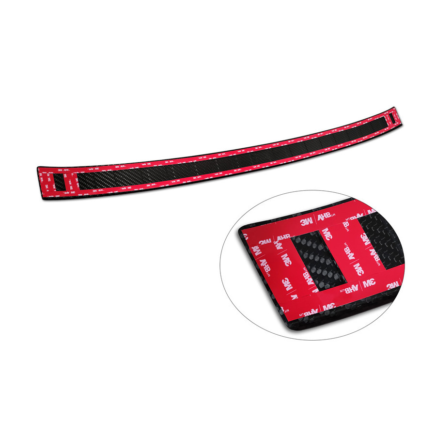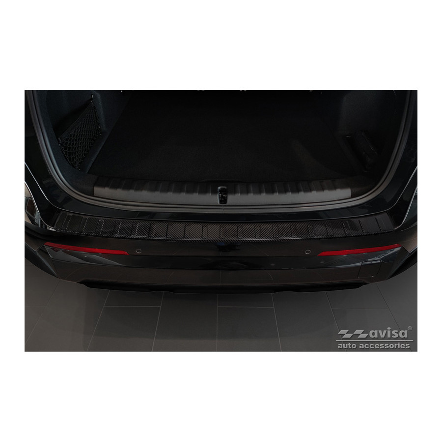 Genuine 3D Carbon Rear Bumper Protector fitting for BMW X1 (U11) 2022- 'Ribs'Provide optimal protection against daily wear and tear on the top of the rear bumper. This part of the car is very sensitive to damage from loading and unloading. The costs for repairs and respraying are high, and the value of your car can decrease.A rear bumper protector prevents damage to the top of your rear bumper. These are tailor-made for your car type and conform to the bumper of your car, resulting in a perfect fit. Material: These Avisa protectors are made of genuine 3D Carbon, which in addition to good protection also gives your car a sporty look. Due to its material properties, carbon fiber is very lightweight and also has good resistance to material fatigue; it can withstand pressure and continuous use. In addition, the durable material is designed in such a way that it is protected against UV radiation and does not discolour. This means that the molding will last for years in its original shape. With over 30 years of experience, Avisa is a leader in the design and manufacture of these protective moldings. They are available in various colors and styles. Installation: These protective moldings are very easy to install. They are attached using double-sided 3M tape, which prevents damage to the original paint. This is included in the package, along with full schematic installation instructions. Installation takes approximately 10 minutes.
