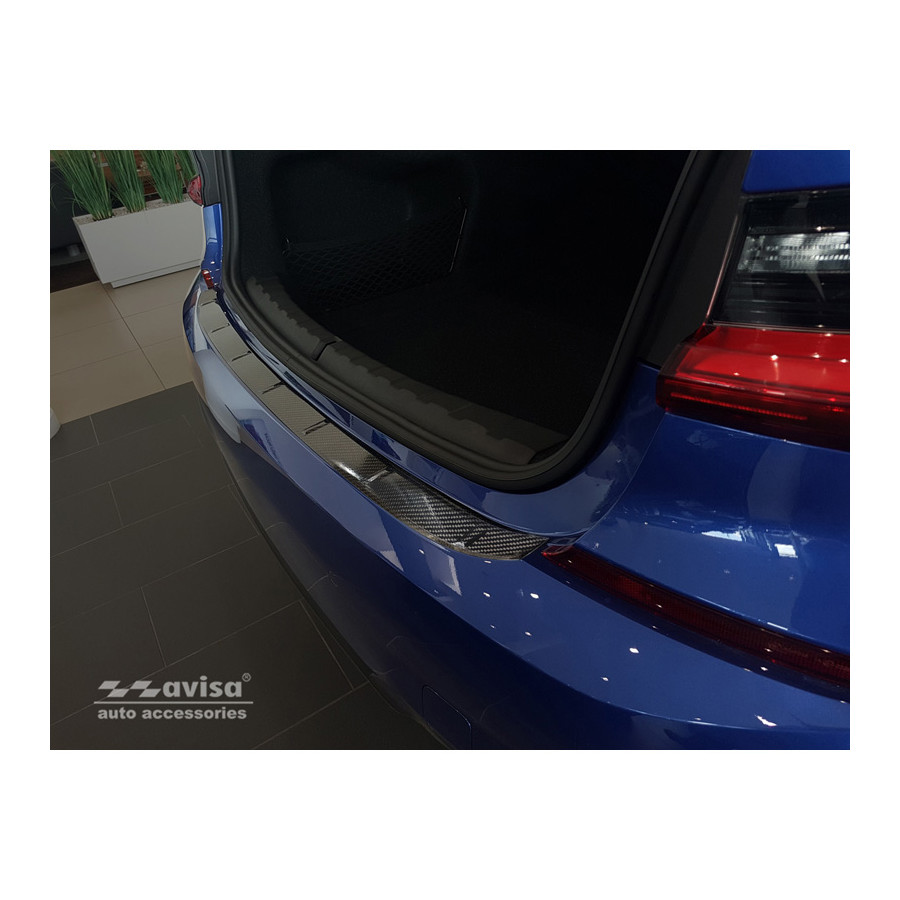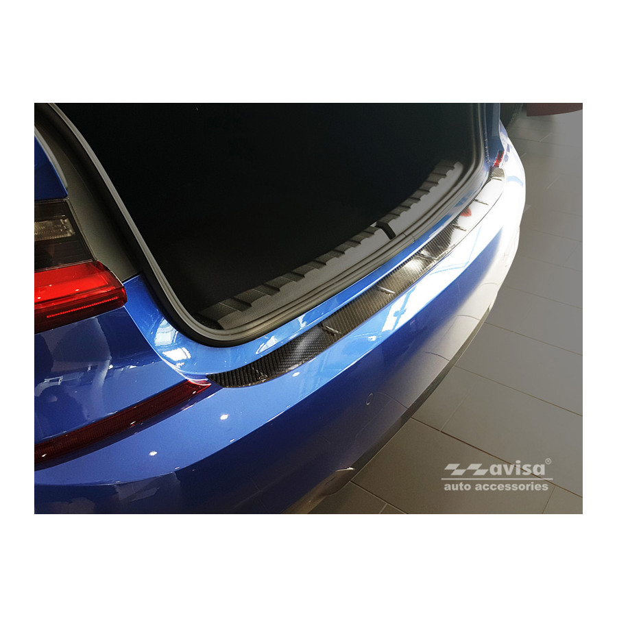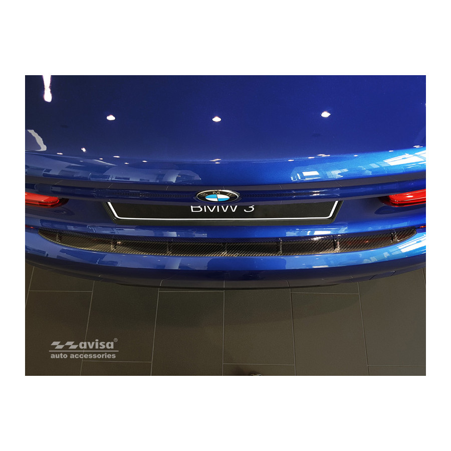 BMW 3 Series G20 Sedan M-Package 2019 - genuine carbon fiber rear bumper protector prevents damage to your car. Most cars are equipped with a painted rear bumper molding. For example, when loading items into the car, the top of the rear bumper is easily scratched. The rear bumper is very susceptible to damage, and repair and respray costs are high.