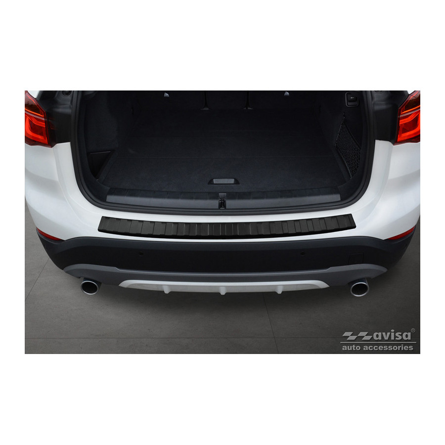 Matte Black Stainless Steel Rear Bumper Protector suitable for BMW X1 (F48) 2015-2022 'Ribs'Provide optimal protection against daily wear and tear on the top of the rear bumper. This part of the car is very sensitive to damage from loading and unloading items. Repair and respraying costs are high, and the value of your car can decrease.