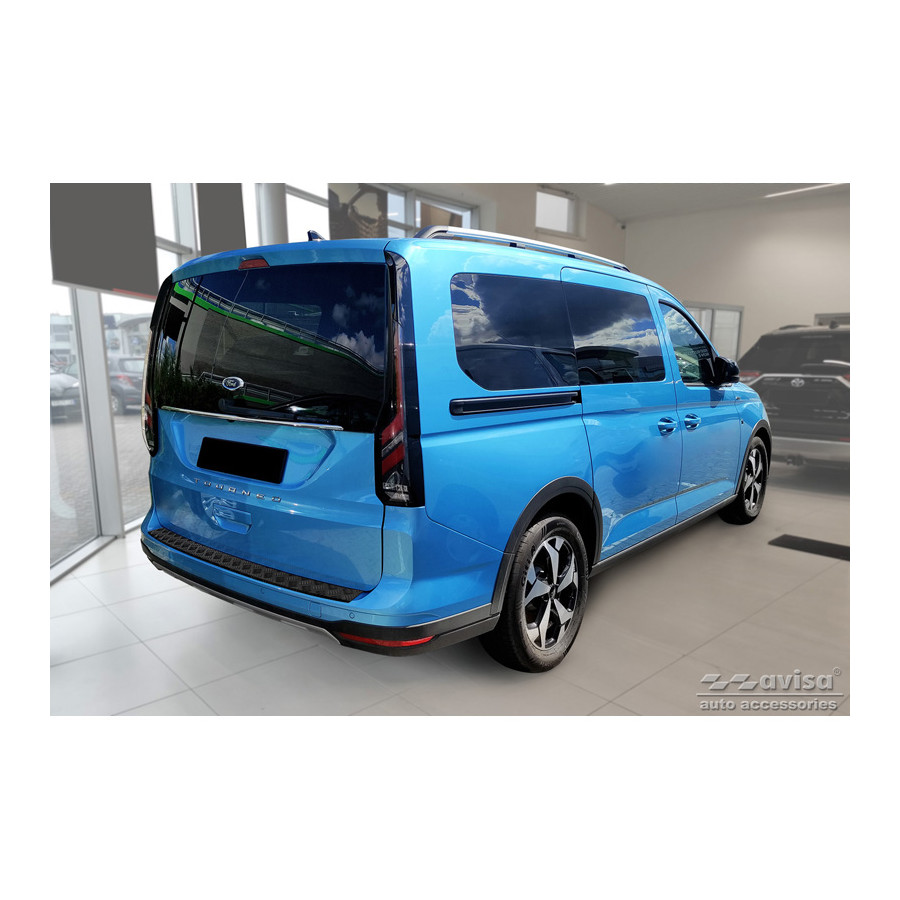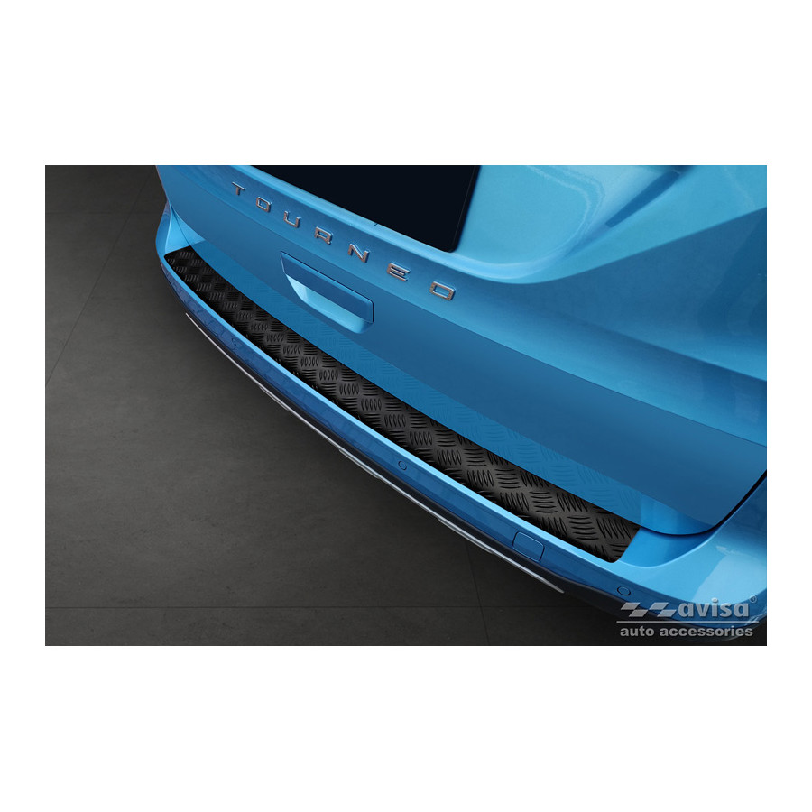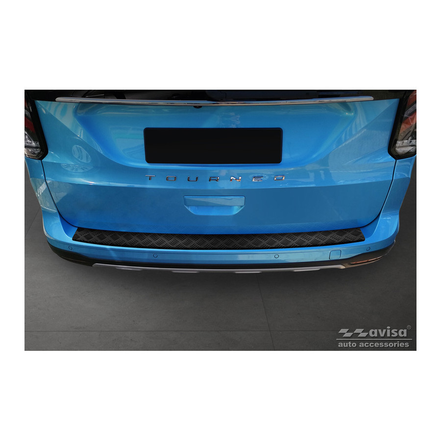 Matte Black Aluminum Rear Bumper Protector suitable for Ford Tourneo Connect III 2022- 'Riffled Plate'. Provides optimal protection against daily wear and tear on the top of the rear bumper. This part of the car is particularly susceptible to damage from loading and unloading. Repair and repainting costs are high, and the value of your car can decrease.