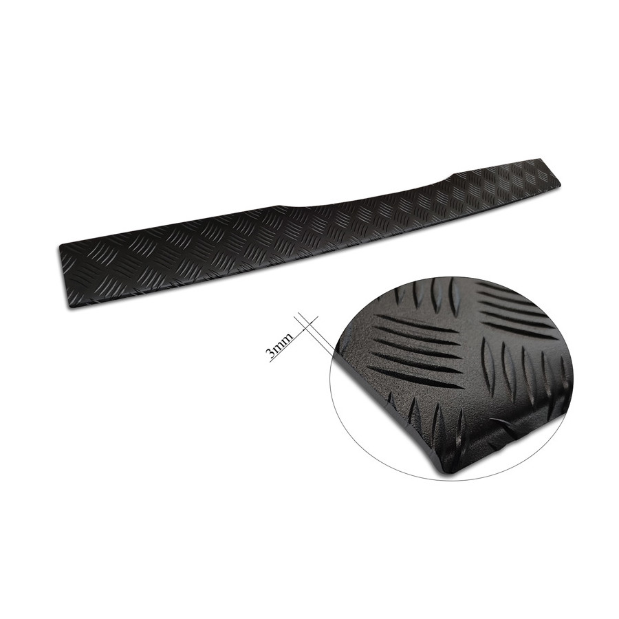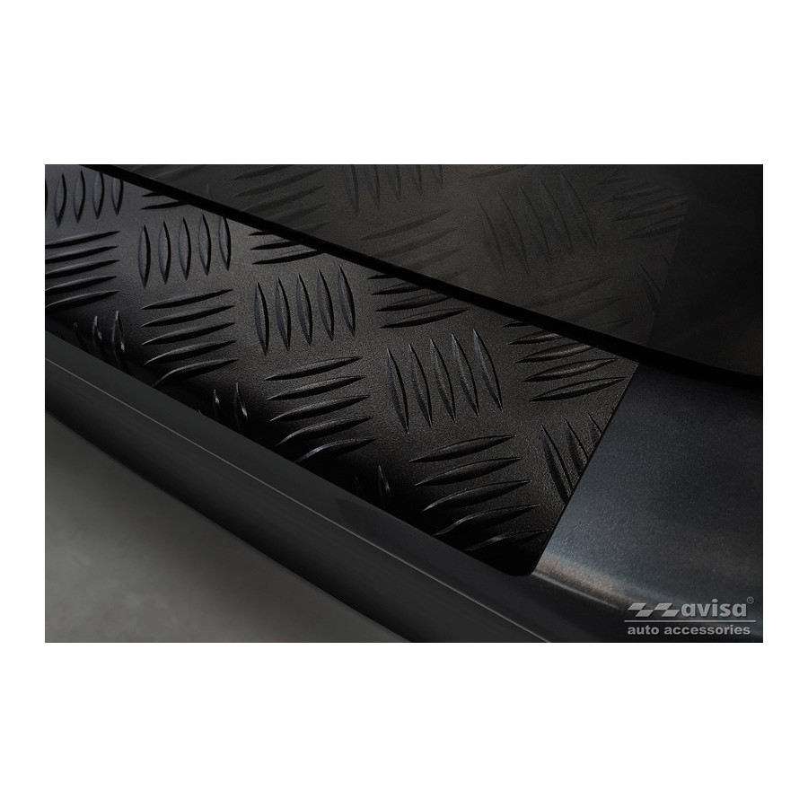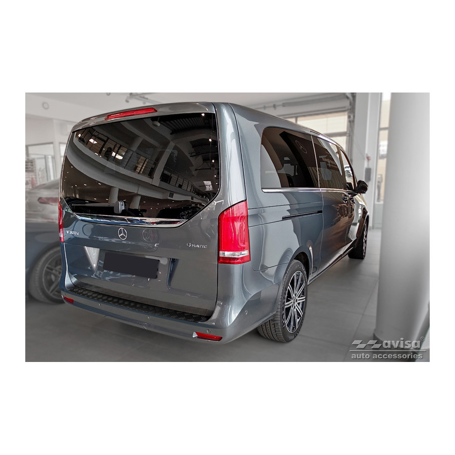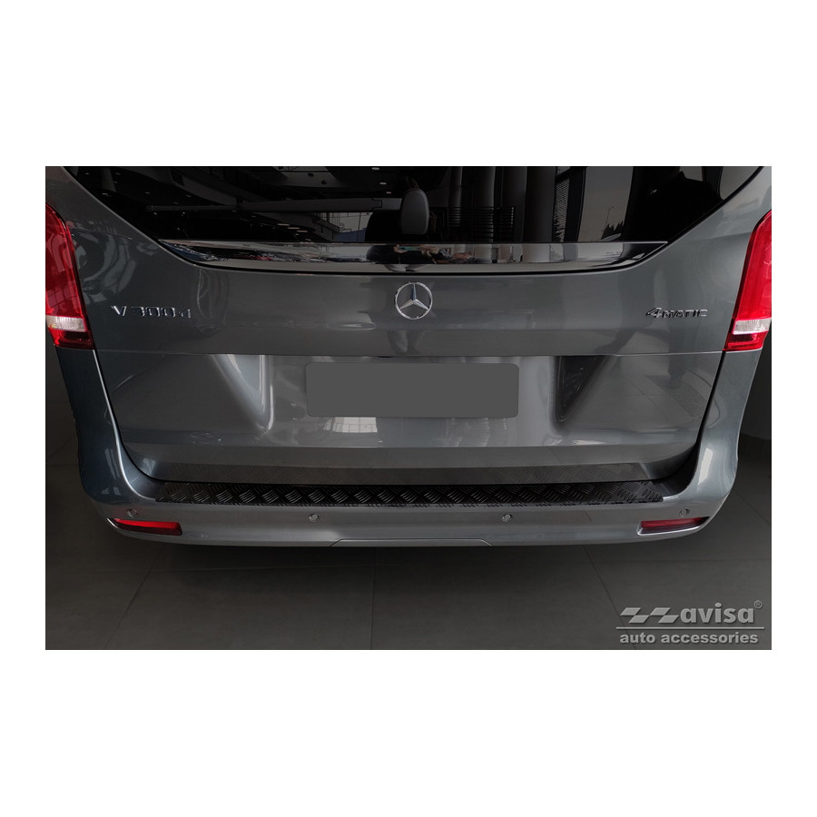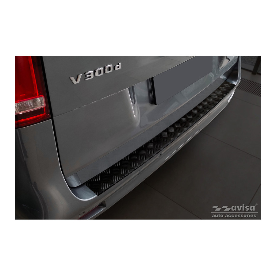 Matte Black Aluminum Rear Bumper Protector for Mercedes Vito & V-Class 2014-2019 & Facelift 2019- 'Riffled Plate'. Provide optimal protection against daily wear and tear on the top of the rear bumper. This part of the car is particularly susceptible to damage from loading and unloading. Repair and repainting costs are high, and the value of your car can decrease. With a rear bumper protector, you can prevent damage to the top of your rear bumper. These are custom-made for your car and conform to your bumper, resulting in a perfect fit. Material: These Avisa protectors are made of aluminum, which not only provides protection but also gives your car a stylish look. The material is sturdy, durable, and weatherproof, ensuring years of service. With over 30 years of experience, Avisa is a leader in the design and production of these protectors. They are available in various colors and styles. Installation: These protectors are very easy to install. They are attached with double-sided 3M tape, which will not damage the original paint. This is included in the package, along with full schematic installation instructions. Installation takes approximately 10 minutes.