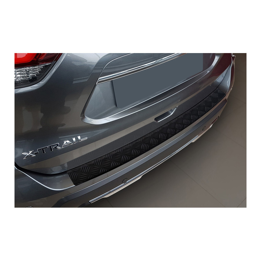 Matte Black Aluminium Rear Bumper Protector suitable for Nissan X-Trail III (T32) Facelift 2017-2021 'Riffled Plate'Provide optimal protection against daily wear and tear on the top of the rear bumper. This part of the car is very sensitive to damage from loading and unloading. Repair and respraying costs are high, and the value of your car can decrease.