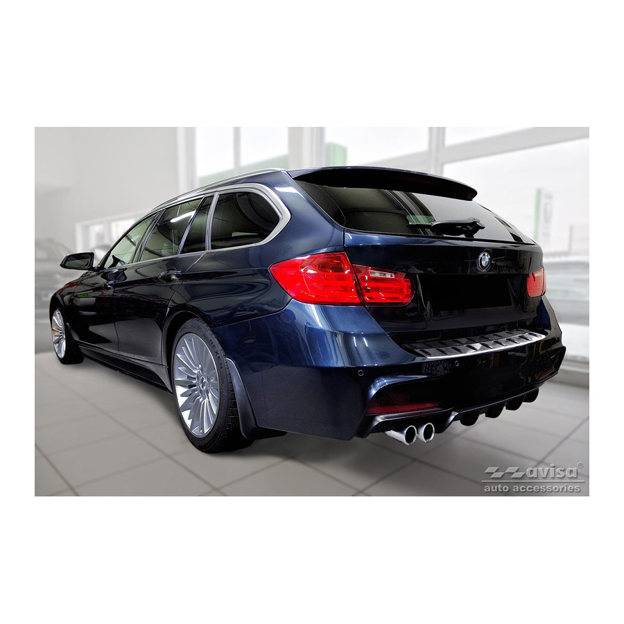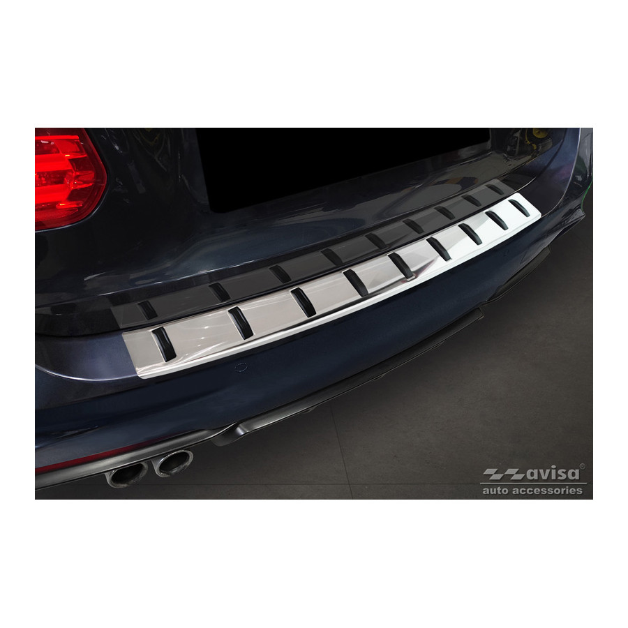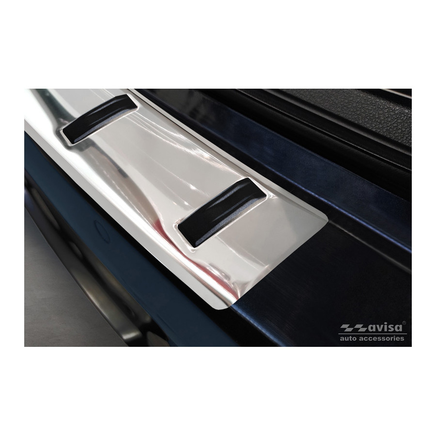 Stainless Steel Rear Bumper Protector suitable for BMW 3-Series (F31) Touring (incl. M-Package) 2012-2015 & Facelift 2015-2019 'STRONG EDITION'. Provide optimal protection against daily wear and tear on the top of the rear bumper. This part of the car is very sensitive to damage from loading and unloading. Repair and respray costs are high, and the value of your car can decrease. With a rear bumper protector, you can prevent damage to the top of your rear bumper. These are custom-made for your car type and conform to the bumper of your car, resulting in a perfect fit. Material: The Avisa 'STRONG EDITION' protectors are made of stainless steel combined with ribs of hardened polyurethane, which in addition to protection also provides a stylish look to your car. The material is sturdy, durable and resistant to all weather influences. This ensures the molding will last for years. With over 30 years of experience, Avisa is a leader in the design and production of these moldings. They are available in various colors and styles. Installation: These moldings are very easy to install. They are attached using double-sided 3M tape, which will not damage the original paint. This is included in the package, along with complete schematic installation instructions. Installation takes approximately 10 minutes. For a selection of rear bumper protectors that are attached directly to unpainted bumpers, a primer is included. The primer enhances the strength of the 3M tape.