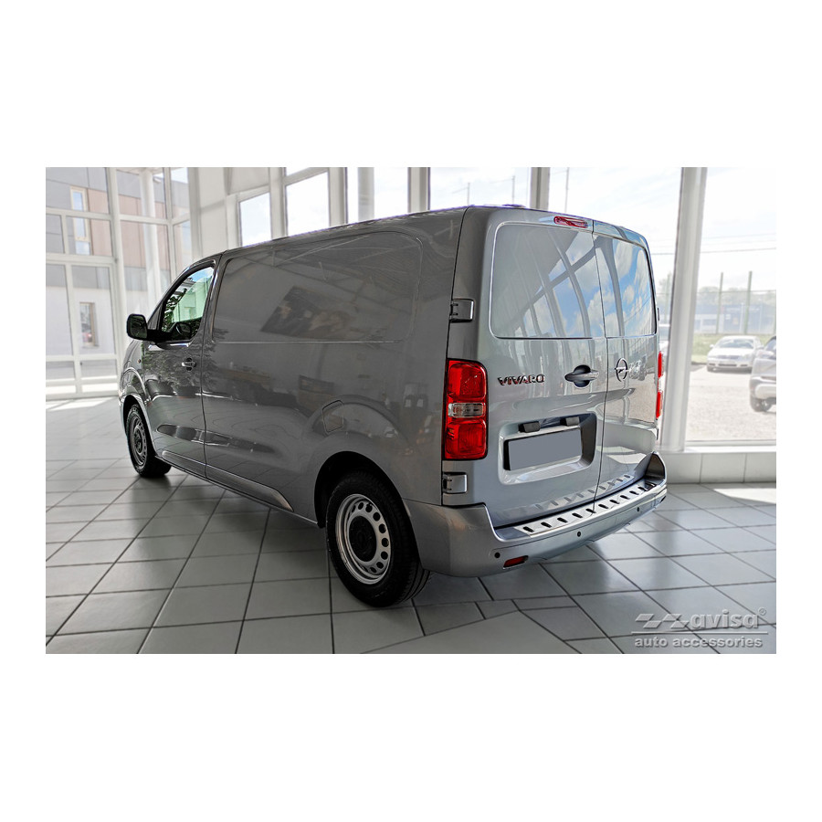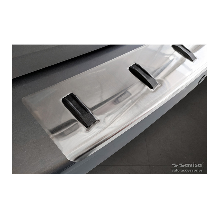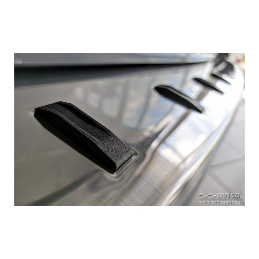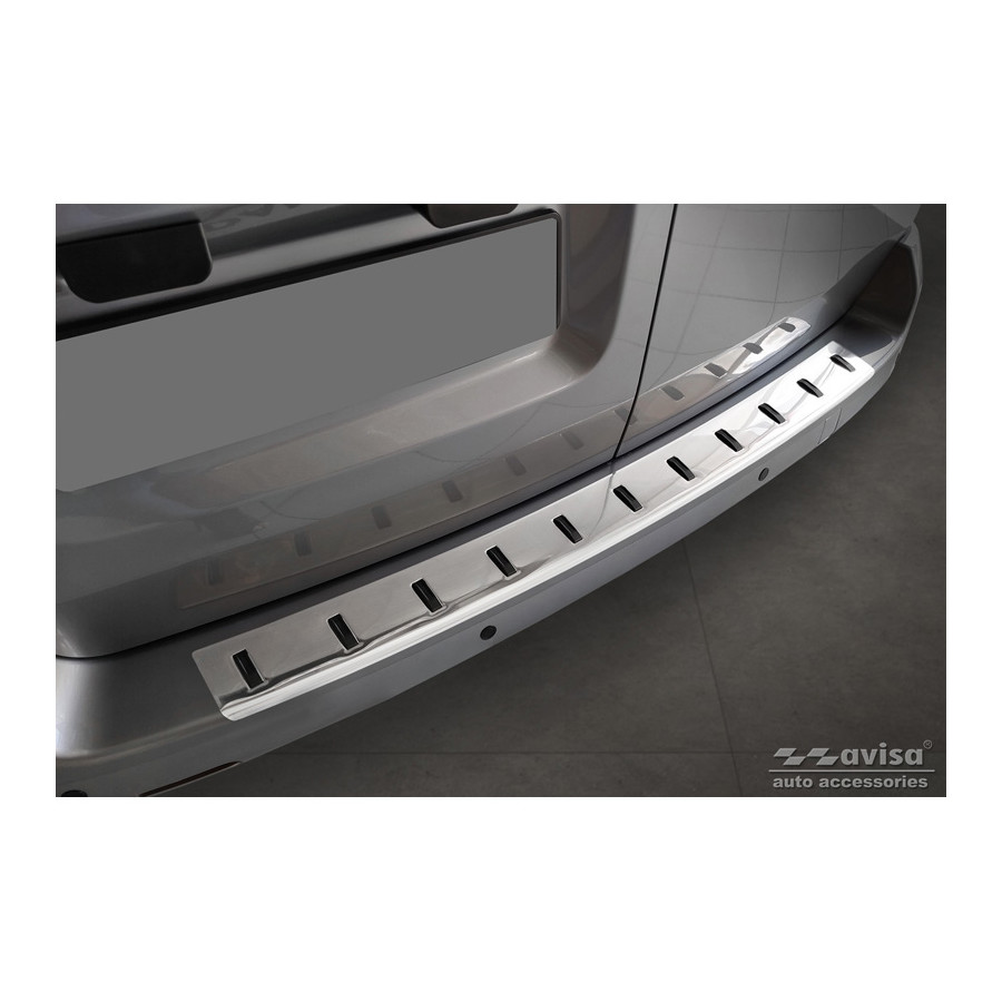 Stainless steel rear bumper protector suitable for Citroën Space Tourer & Jumpy 2016- / Peugeot Traveller & Expert 2016- / Toyota Proace Verso 2016- / Opel Vivaro & Zafira Life 2019- 'STRONG EDITION'. Provide optimal protection against daily wear and tear on the top of your rear bumper. This part of your car is very susceptible to damage from loading and unloading. Repair and respray costs are high, and the value of your car can decrease. With a rear bumper protector, you can prevent damage to the top of your rear bumper. These are custom-made for your car and conform to your car's bumper, ensuring a perfect fit. Material: The Avisa 'STRONG EDITION' protectors are made of stainless steel combined with hardened polyurethane ribs, which not only provides protection but also gives your car a stylish look. The material is sturdy, durable, and weatherproof. This ensures the molding will last for years. With over 30 years of experience, Avisa is a leader in the design and production of these moldings. They are available in various colors and styles. Installation: These moldings are very easy to install. They are attached using double-sided 3M tape, which will not damage the original paint. This is included in the package, along with complete schematic installation instructions. Installation takes approximately 10 minutes. For a selection of rear bumper protectors that are attached directly to unpainted bumpers, a primer is included. The primer enhances the strength of the 3M tape.