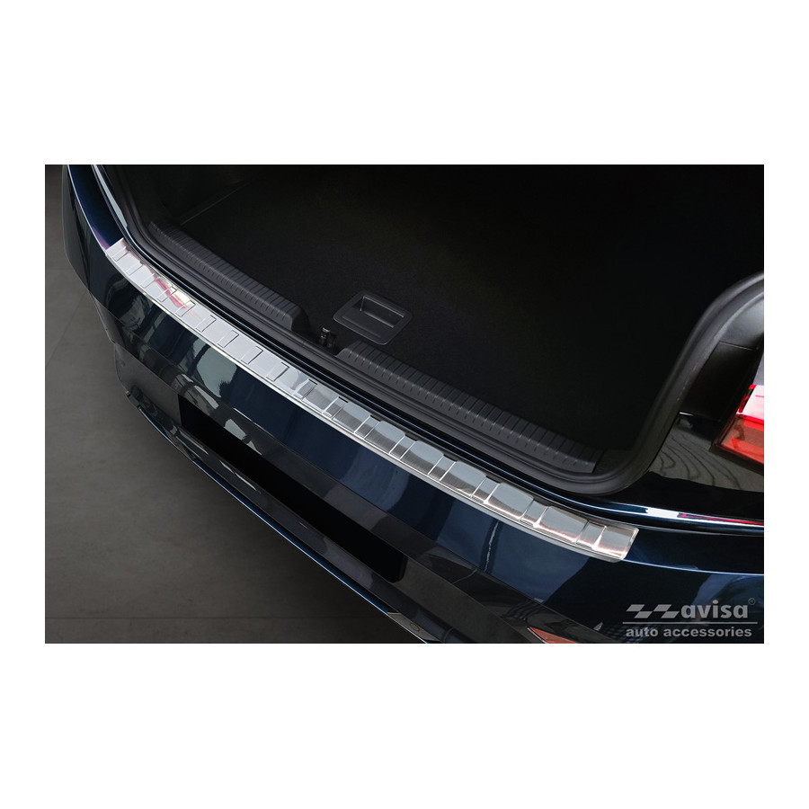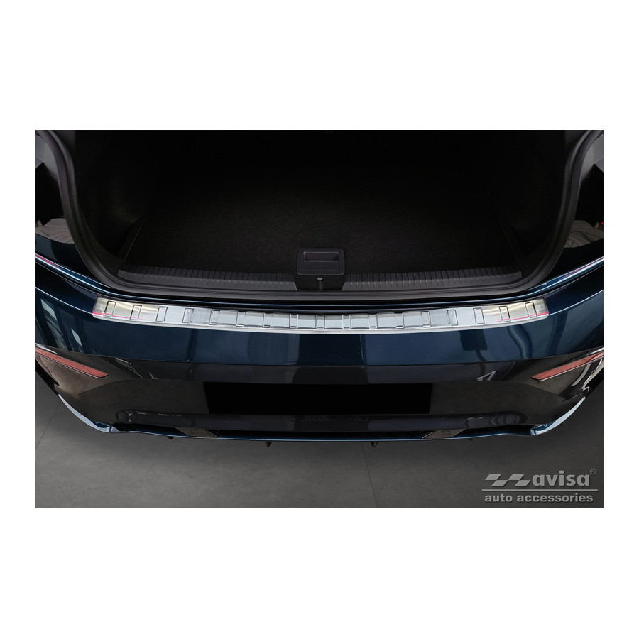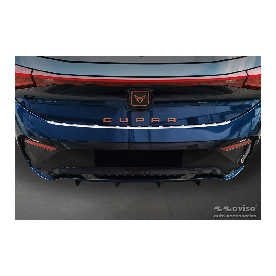 Stainless steel rear bumper protector suitable for Cupra Born 2021- 'Ribs'. Provide optimal protection against daily wear and tear on the top of the rear bumper. This part of the car is particularly susceptible to damage from loading and unloading. Repair and repainting costs are high, and the value of your car can decrease.