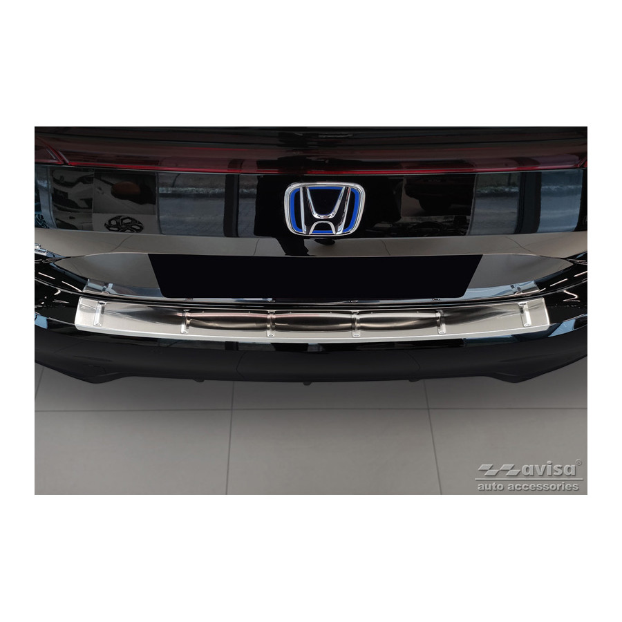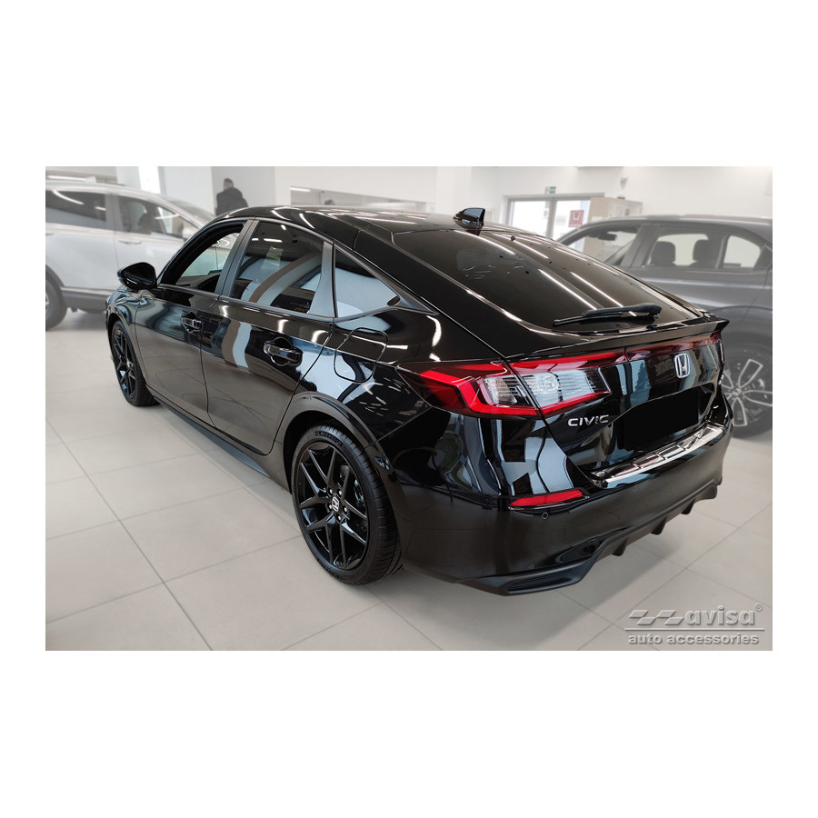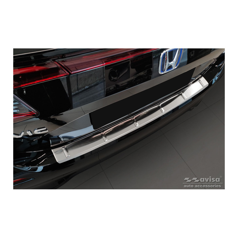 Stainless steel Rear bumper protector suitable for Honda Civic XI HB 2022- 'Ribs'Provide optimal protection against daily wear and tear on the top of the rear bumper. This part of the car is very sensitive to damage from loading and unloading items. The costs for repairs and repainting are high, and the value of your car can decrease.