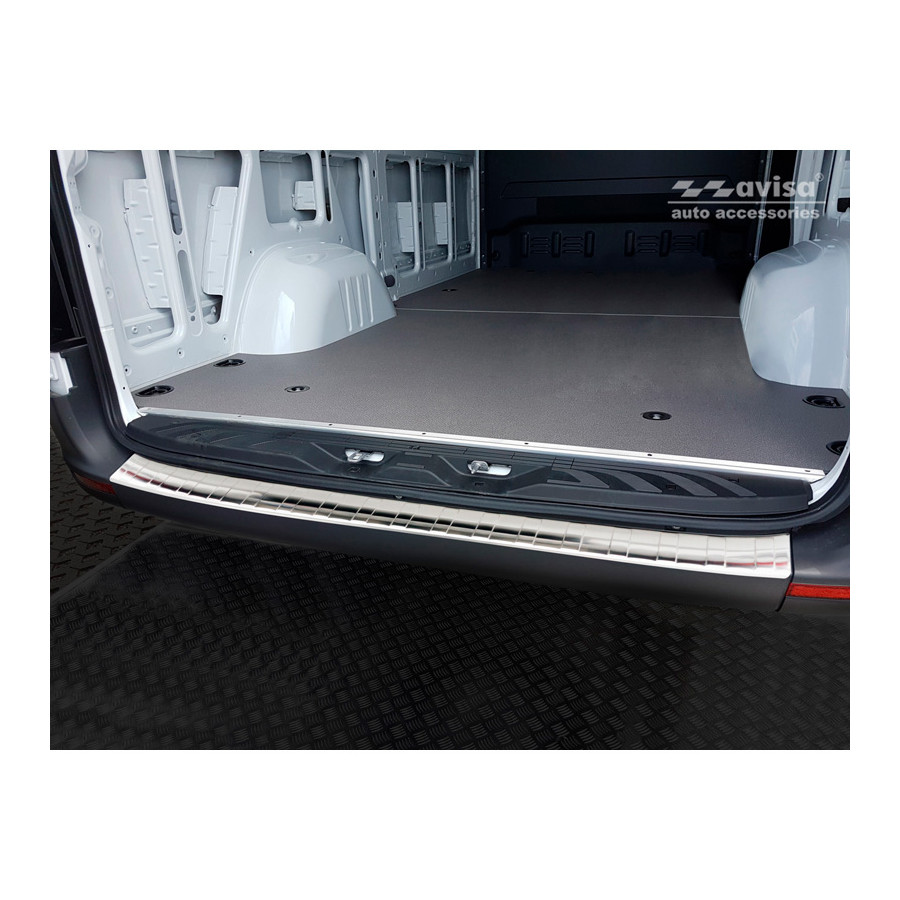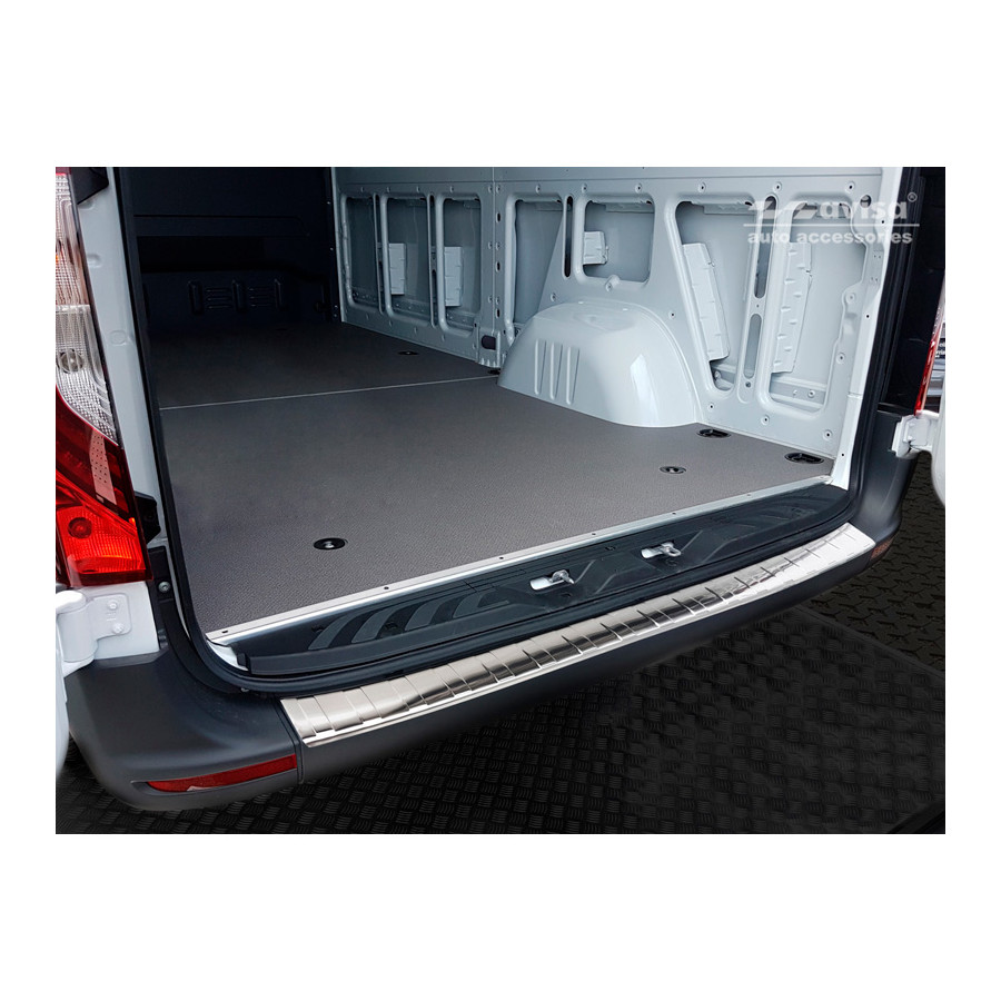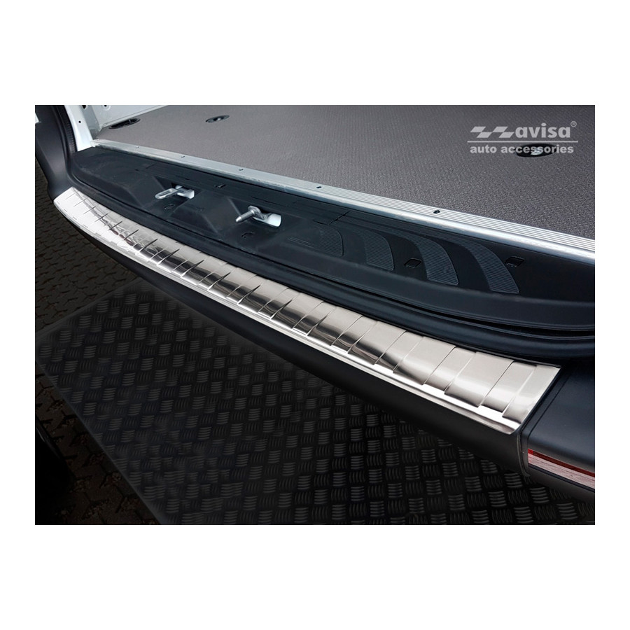 Mercedes Sprinter III 2018- Stainless steel rear bumper protectors prevent damage to your car. Most cars are equipped with a painted rear bumper molding. For example, when loading items into the car, the top of the rear bumper is easily scratched. The rear bumper is very susceptible to damage, and repair and respray costs are high.