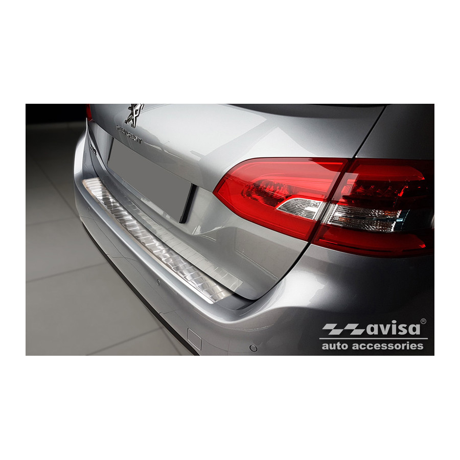 Stainless Steel Rear Bumper Protector Peugeot 308 II SW 2013-2017 & Facelift 2017- 'Ribs' Provides optimal protection against daily wear and tear on the top of the rear bumper. This part of the car is very susceptible to damage from loading and unloading. Repair and repainting costs are high, and the value of your car can decrease.