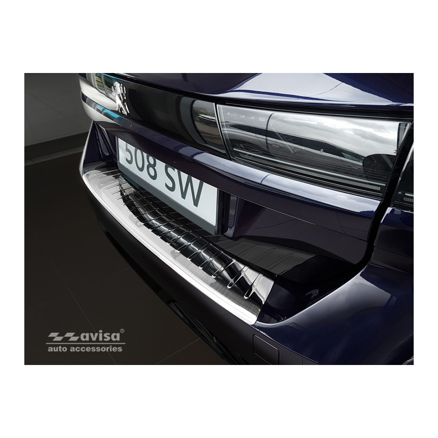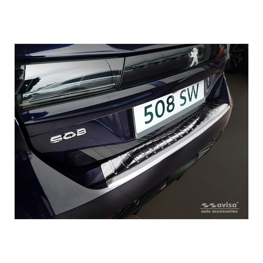 Peugeot 508 II SW 2019 stainless steel rear bumper protector prevents damage to your car. Most cars are equipped with a painted rear bumper molding. For example, when loading items into the car, the top of the rear bumper is easily scratched. The rear bumper is very susceptible to damage, and repair and respray costs are high.