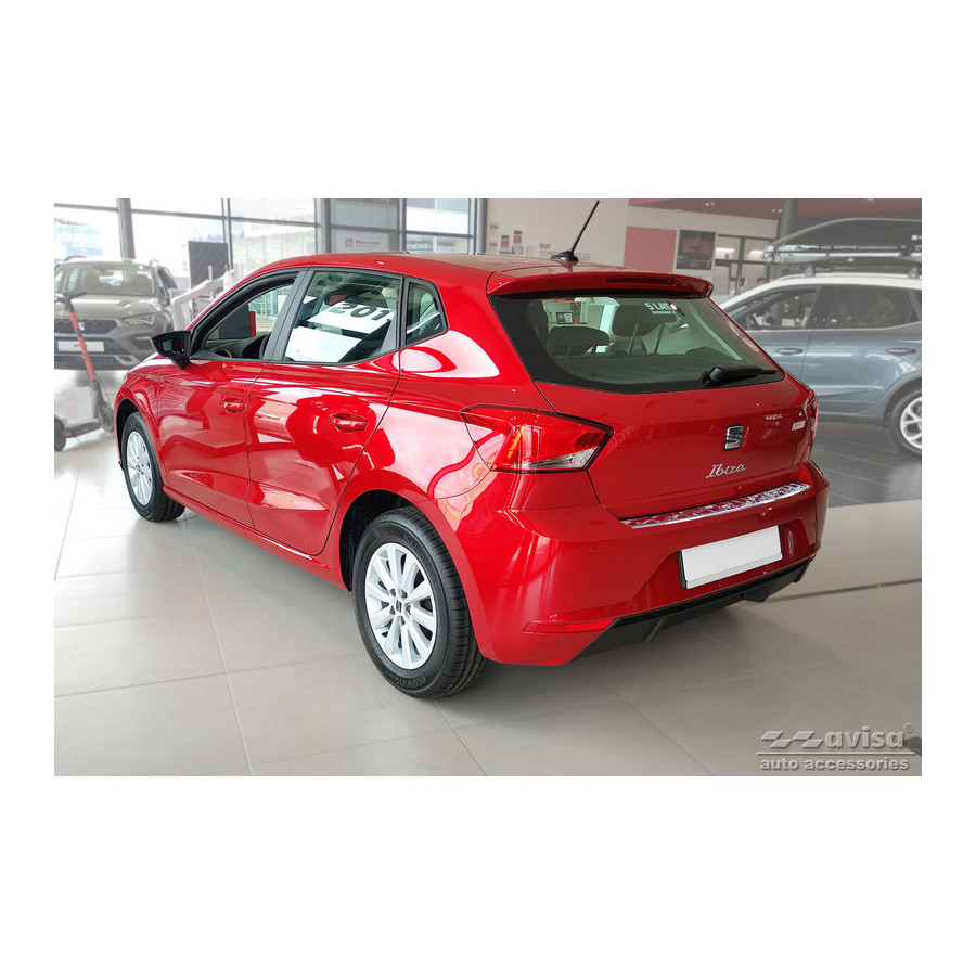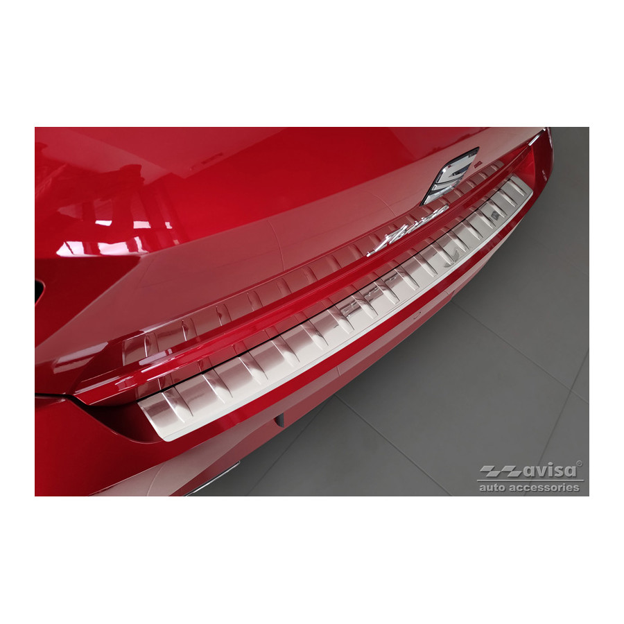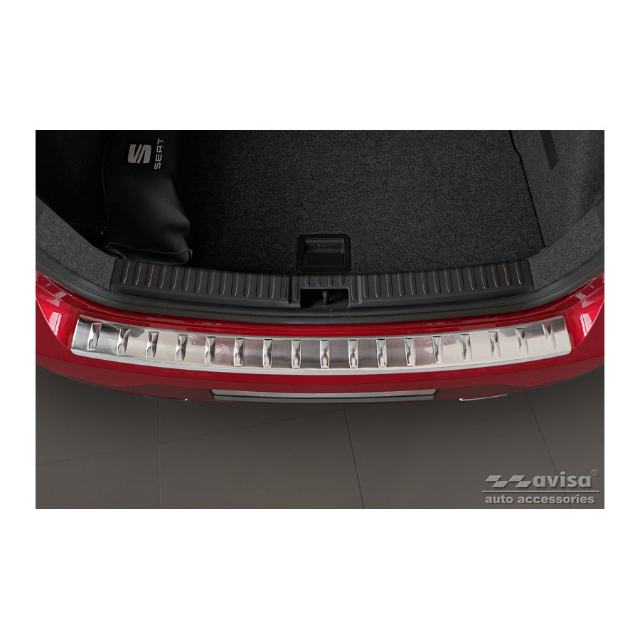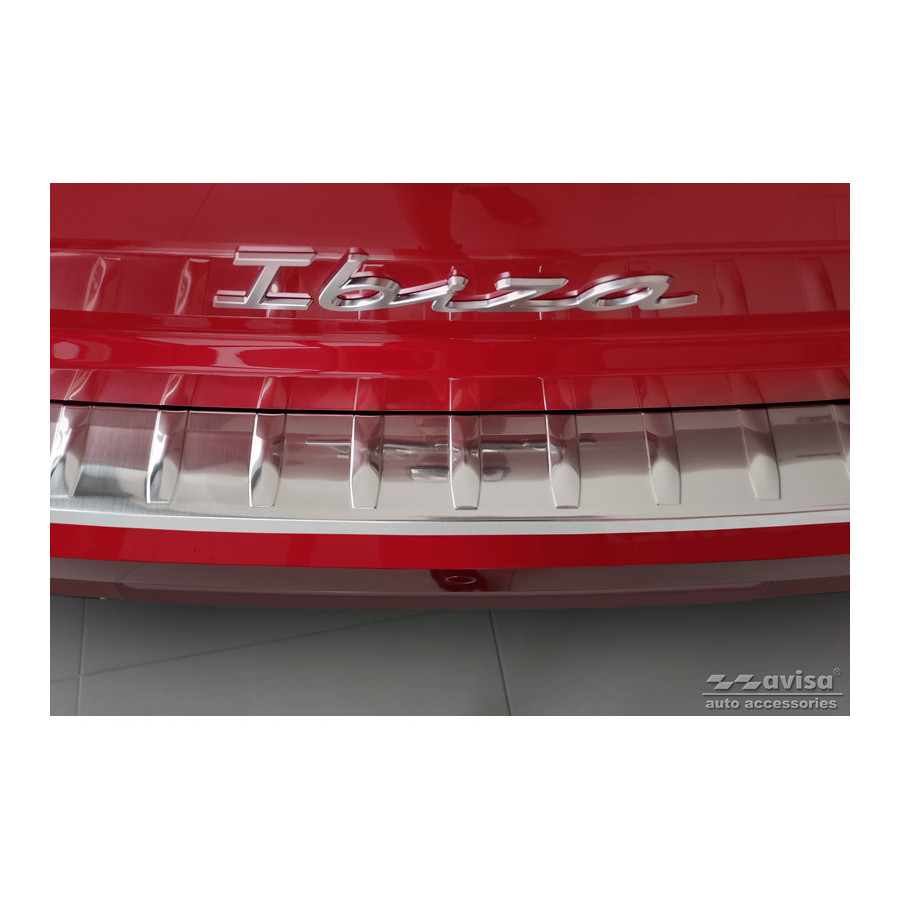Stainless steel rear bumper protector suitable for Seat Ibiza 6F Facelift 2021 - 'Ribs'. Provide optimal protection against daily wear and tear on the top of the rear bumper. This part of the car is very susceptible to damage from loading and unloading. Repair and repainting costs are high, and the value of your car can decrease.