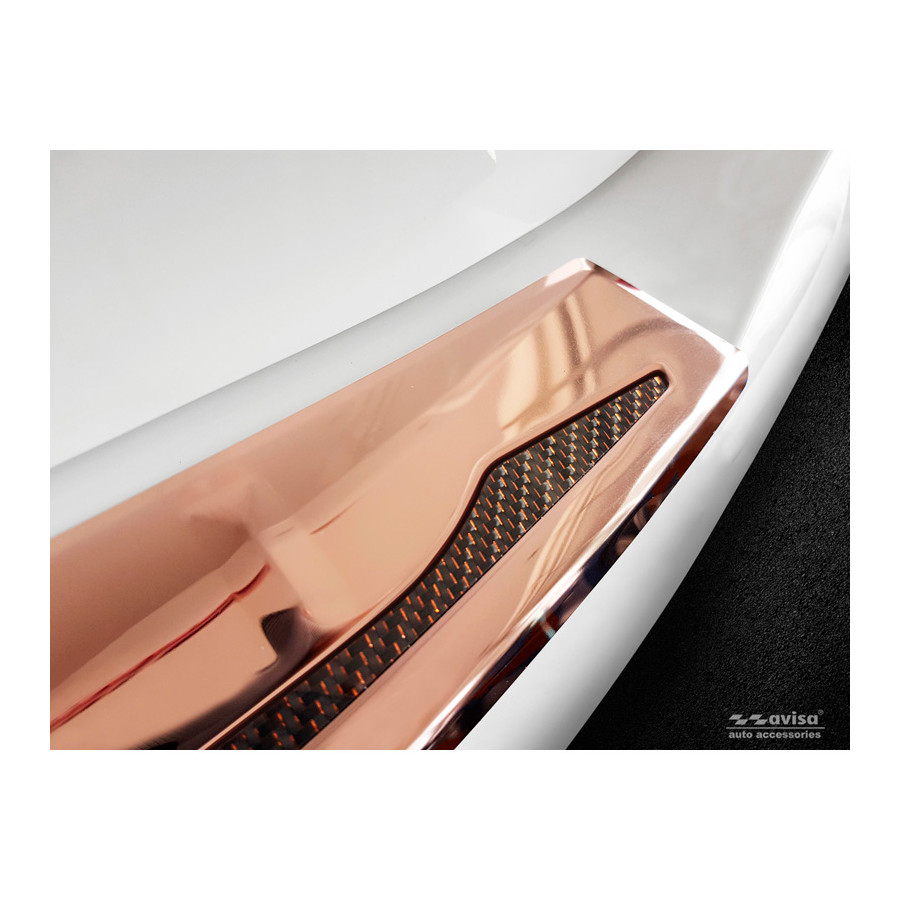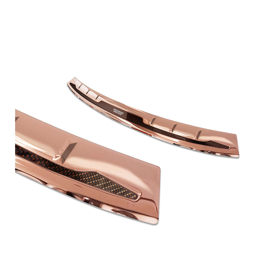 The molding is made of durable stainless steel, so it won't damage the original paint. It's a custom-fit molding that completely protects the upper section of the rear bumper. The moldings are CNC-cut and laser-cut to ensure a perfect fit.