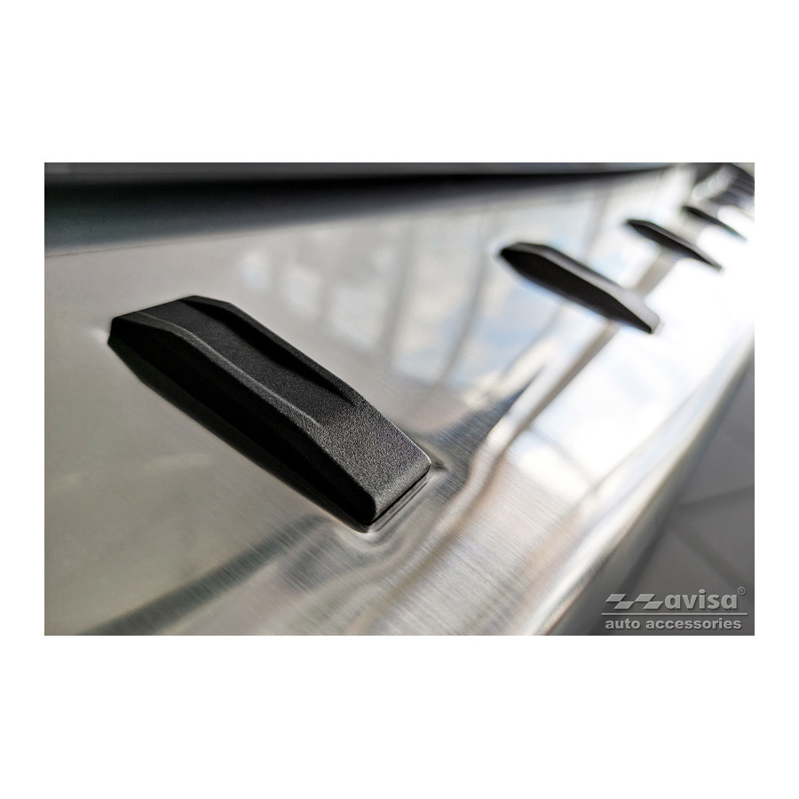 Stainless steel rear bumper protector suitable for BMW 2 Series (U06) Active Tourer (incl. M-Package) 2021- 'STRONG EDITION'. Provide optimal protection against daily wear and tear on the top of your rear bumper. This part of the car is very susceptible to damage from loading and unloading. Repair and respray costs are high, and the value of your car can decrease. With a rear bumper protector, you can prevent damage to the top of your rear bumper. These are custom-made for your car and conform to the bumper of your car, resulting in a perfect fit. Material: The Avisa 'STRONG EDITION' protectors are made of stainless steel combined with hardened polyurethane ribs, which not only provides protection but also gives your car a stylish look. The material is strong, durable, and resistant to all weather conditions. This ensures the molding will last for years. With over 30 years of experience, Avisa is a leader in the design and production of these moldings. They are available in various colors and styles. Installation: These moldings are very easy to install. They are attached using double-sided 3M tape, which will not damage the original paint. This is included in the package, along with complete schematic installation instructions. Installation takes approximately 10 minutes. For a selection of rear bumper protectors that are attached directly to unpainted bumpers, a primer is included. The primer enhances the strength of the 3M tape.