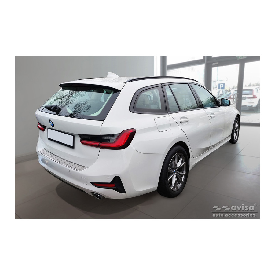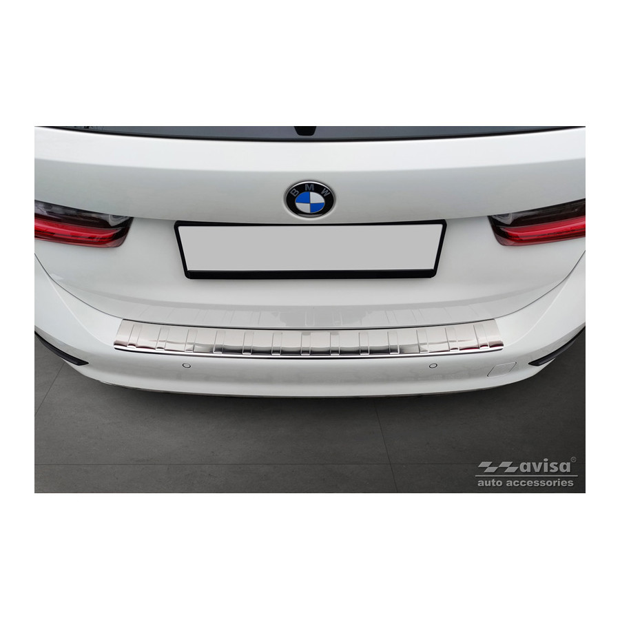 Stainless steel rear bumper protector suitable for BMW 3 Series G21 Touring 2019-2022 "Ribs". Provide optimal protection against daily wear and tear on the top of the rear bumper. This part of the car is particularly susceptible to damage from loading and unloading. Repair and repainting costs are high, and the value of your car can decrease.