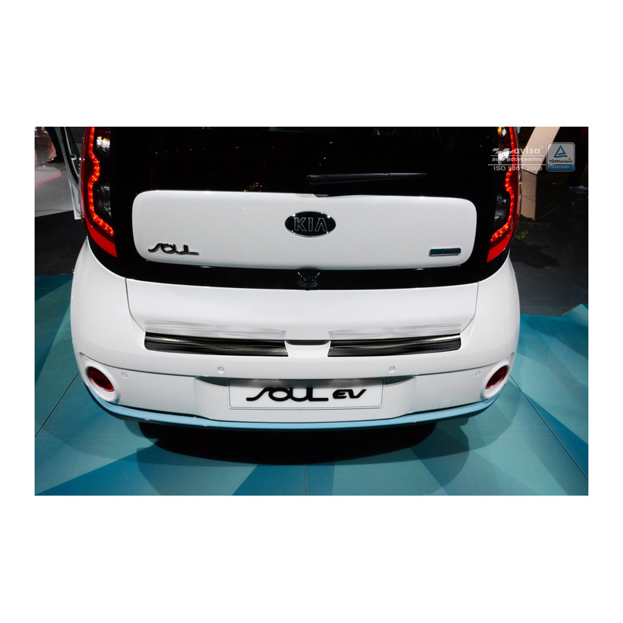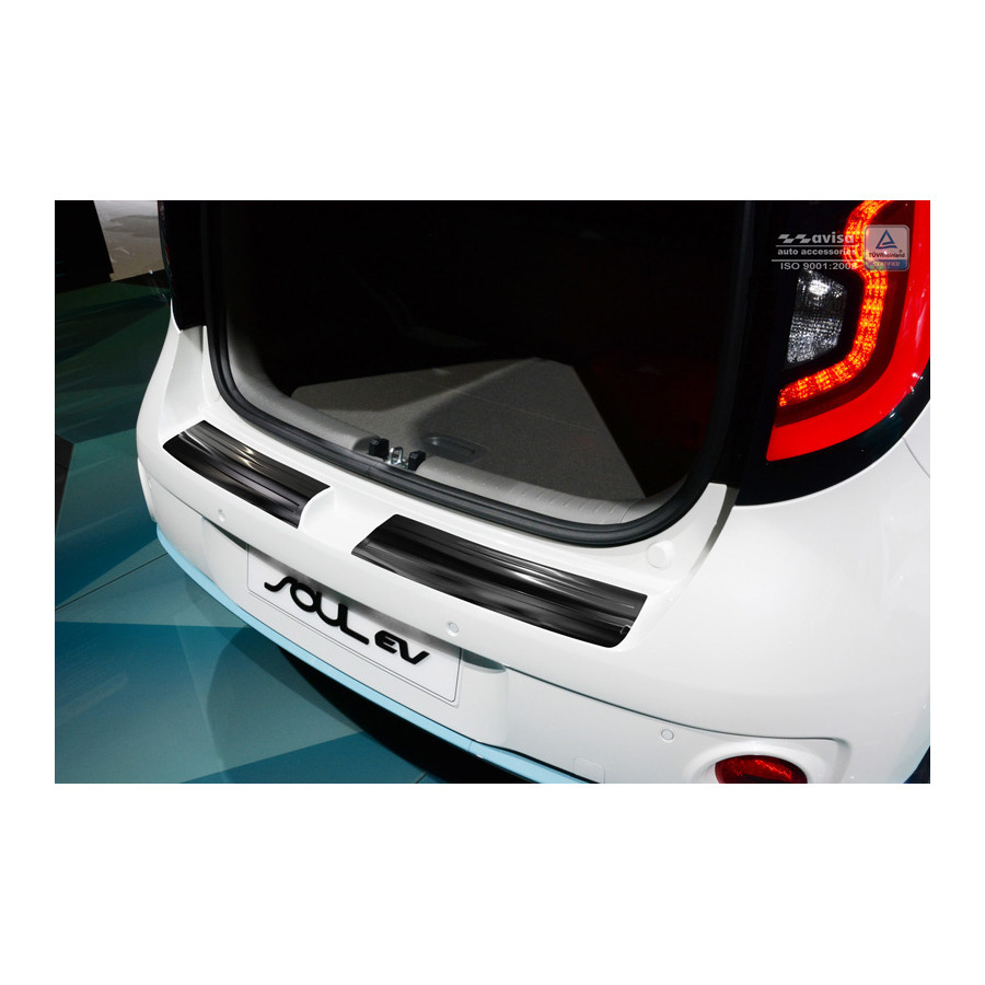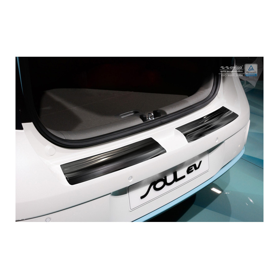 Kia Soul EV 2014- (2-Piece) Black stainless steel (powder-coated) rear bumper protector prevents damage to your car. Most cars are equipped with a painted rear bumper molding. For example, when loading items into the car, the top of the rear bumper is easily scratched. The rear bumper is very susceptible to damage, and repair and respray costs are high.