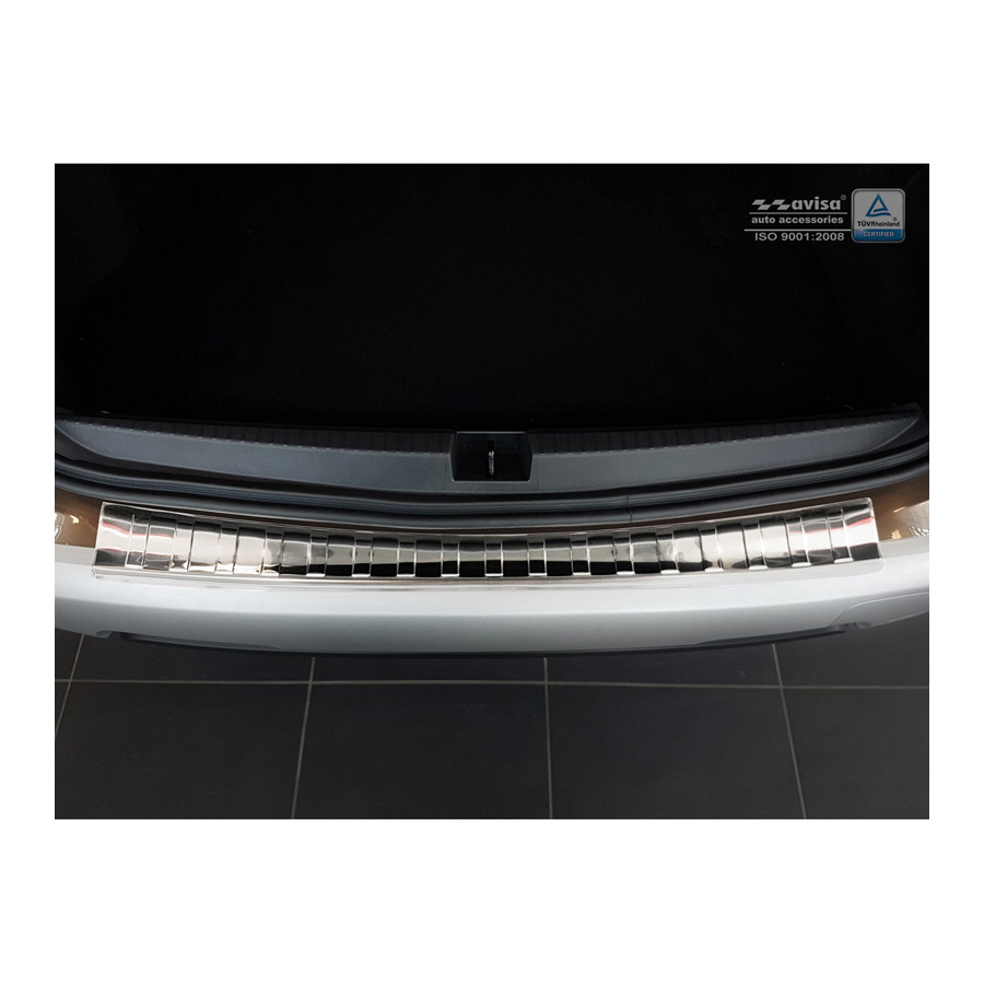 The molding is made of durable stainless steel, so it won't damage the original paint. It's a custom-fit molding that completely protects the upper section of the rear bumper. The moldings are CNC-cut and laser-cut to ensure a perfect fit.