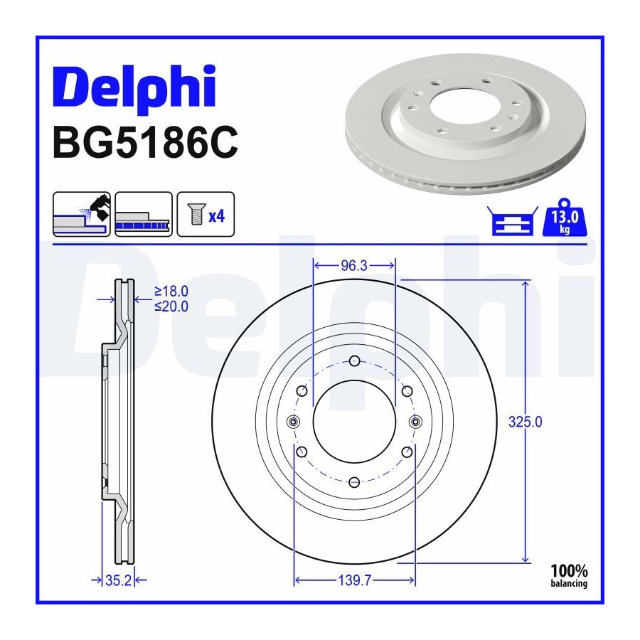 Brake disc BG5186C Delphi