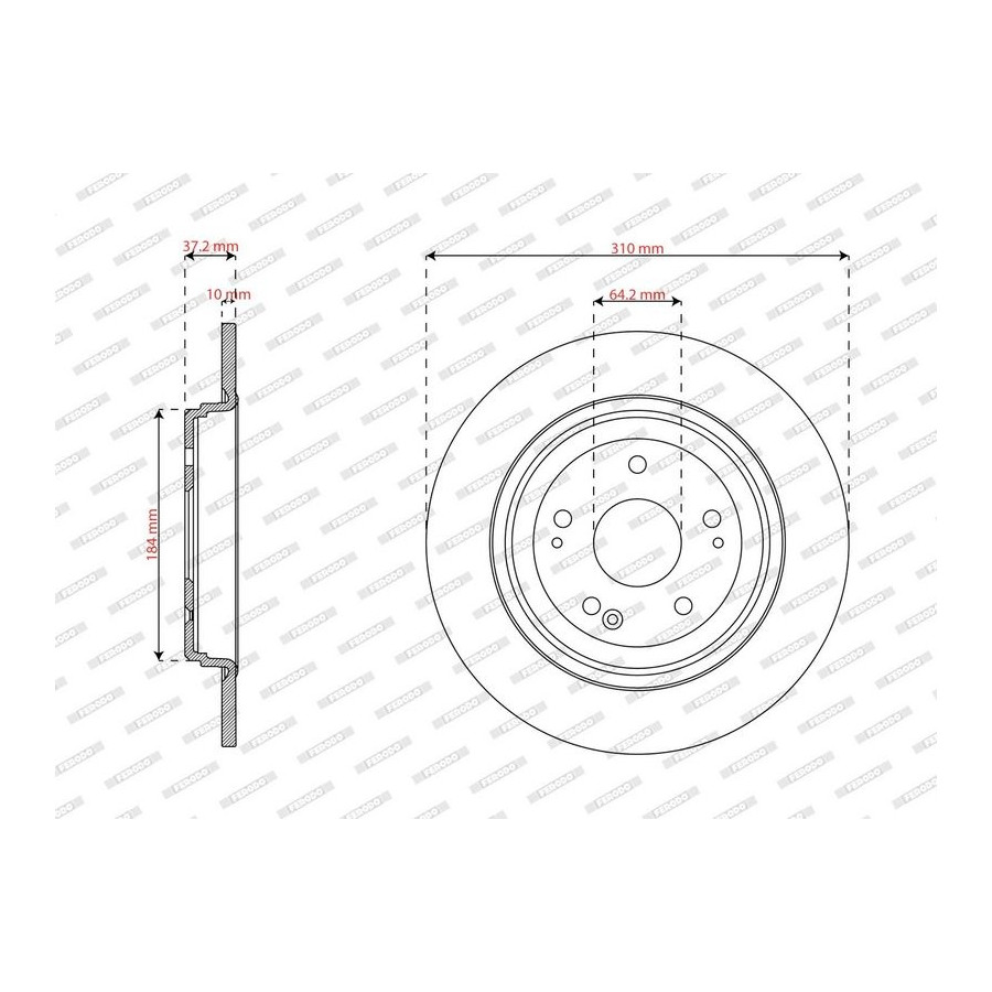 Outer diameter [mm] 310 Brake Disc Type Solid Surface Coated Number of Holes 5 Number of mounting bores 2 Brake pads Exclusive Bolt Hole Circle Ø [mm] 114,3 Packing Type Box Centering Diameter [mm] 64,2 Quantity Unit Kit Packaging length [cm] 32 Packaging width [cm] 32 Packaging height [cm] 10,1 Inspection Tag R90 Homologated Warranty 2 years Height [mm] 37,2 Additional information Without screws Brake disc thickness (mm) 10 Minimum thickness (mm) 8 Weight [kg] 10,05 Hole diameter [mm] 12,6 Similar products of other manufacturers