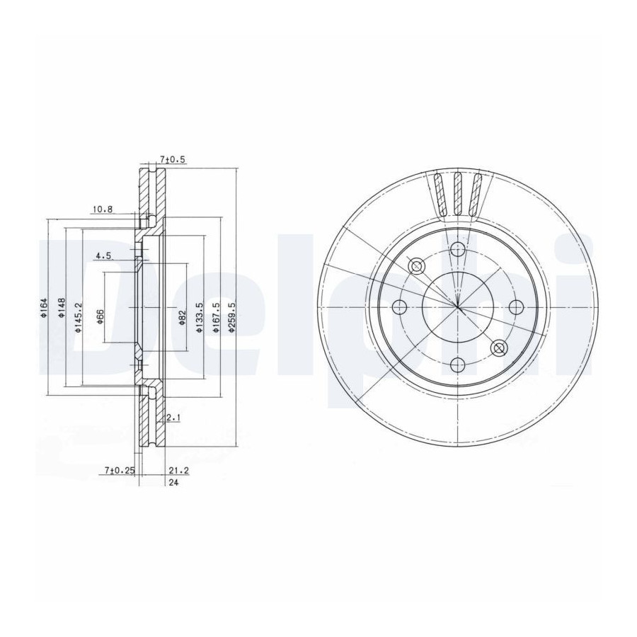 Outer diameter [mm] 260 Brake Disc Type Vented Surface Oiled Number of Holes 4 Brake pads Exclusive Centering Diameter [mm] 66 Inspection Tag E1 90R-02C0289/1818 Warranty 2 years Height [mm] 29 Brake disc thickness (mm) 24 Minimum thickness (mm) 22 Similar products of other manufacturers