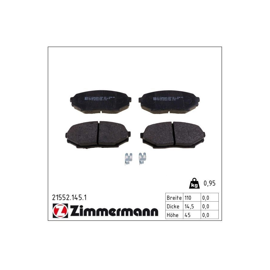 Zimmermann brake pads are specially optimized for your car. This gives you a brake pad set that runs smoothly, provides good braking power, but lasts a long time. The brake pads from Zimmermann are similar to the original brake pads of your car or exceed the specifications.