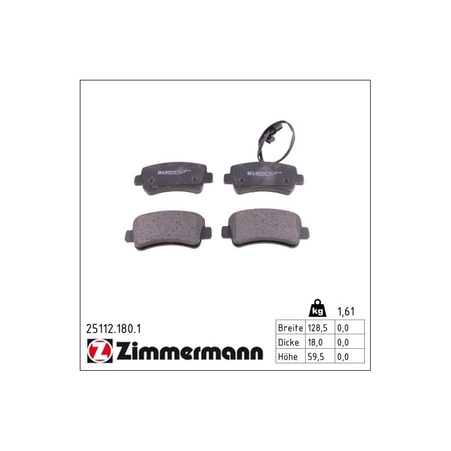 Brake Pad Set, disc brake 25112.180.1 Zimmermann