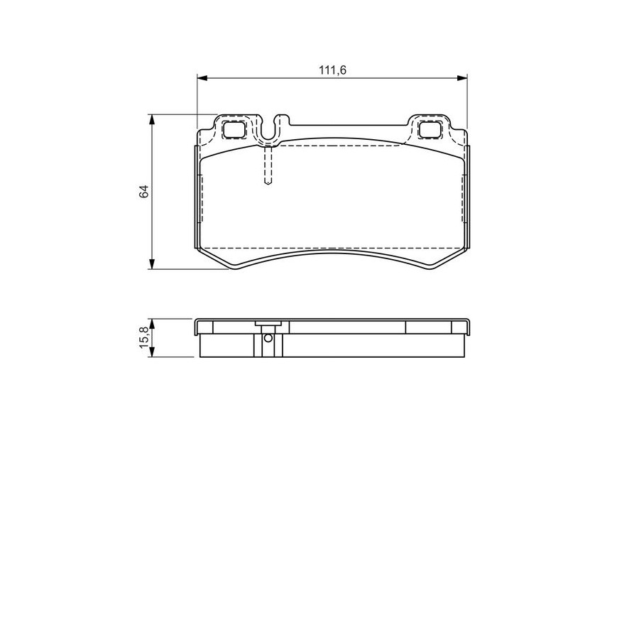 Wear Warning Contact Without wear indicator Content Set (4 brake pads per axle) Material Low-Metallic Supplementary Article/Info 2 With anti-squeak plate With mounting manual Part number of recommended accessories 1 987 473 070 1 987 473 586 1 987 474 966 1 987 474 730 1 987 474 323 WVA Number 23478 Inspection Tag ECE-R90 Warranty 2 years Height [mm] 64 Width [mm] 111,6 Thickness [mm] 15,8 Product must be determined by vehicle or engine Similar products of other manufacturers