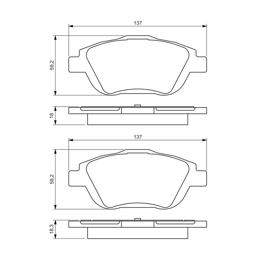 Wear Warning Contact Without wear indicator Content Set (4 brake pads per axle) Material Low-Metallic Supplementary Article/Info 2 With anti-squeak plate Part number of recommended accessories 1 987 474 311 1 987 474 241 WVA Number 24883 Inspection Tag ECE-R90 Number of screws 4 Warranty 2 years Height [mm] 58,9 Width [mm] 136,4 Thickness [mm] 18 Product must be determined by vehicle or engine Similar products of other manufacturers