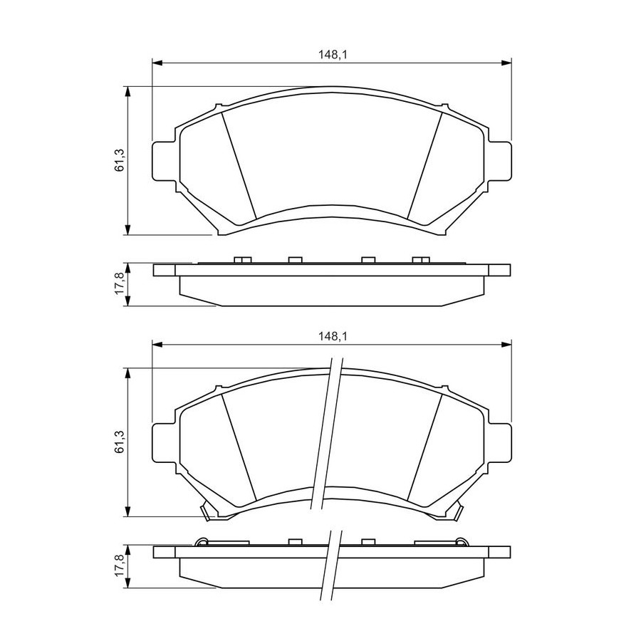Wear Warning Contact Incl. wear warning contact With acoustic wear warning Content Set (4 brake pads per axle) Assembly Front Material Low-Metallic Supplementary Article/Info 2 With anti-squeak plate Manufacturer Restriction SUMITOMO System Part number of recommended accessories 1 987 474 668 WVA Number 23358 Inspection Tag ECE-R90 Warranty 2 years Height [mm] 61,3 Width [mm] 148,1 Thickness [mm] 17,8 Product must be determined by vehicle or engine Similar products of other manufacturers