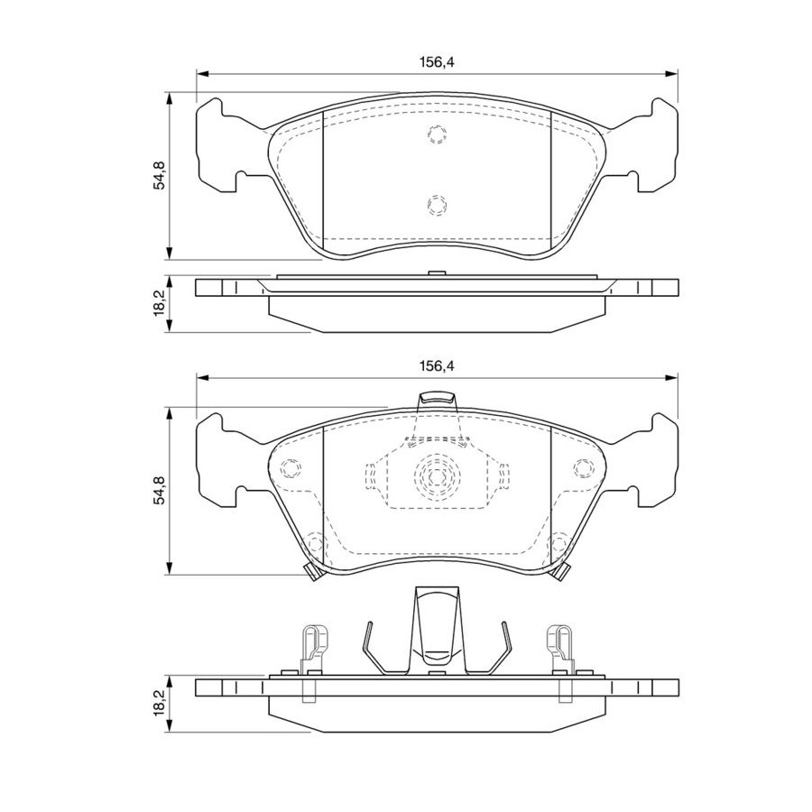 braking System ATE Wear Warning Contact Incl. wear warning contact With acoustic wear warning Content Set (4 brake pads per axle) Assembly Front Material Low-Metallic Supplementary Article/Info 2 With anti-squeak plate With piston clip Part number of recommended accessories 1 987 474 175 1 987 474 732 1 987 474 396 WVA Number 21975 Inspection Tag ECE-R90 Warranty 2 years Height [mm] 54,5 Width [mm] 156,6 Thickness [mm] 18 Product must be determined by vehicle or engine Similar products of other manufacturers