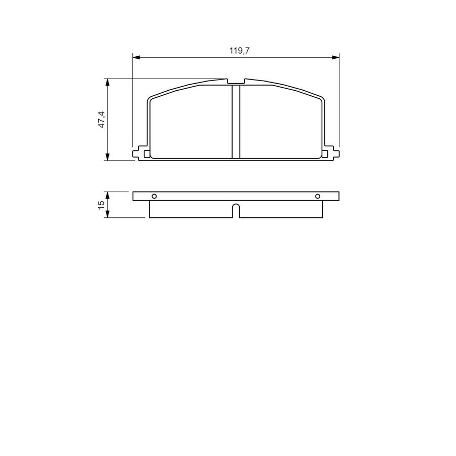 Wear Warning Contact Excl. wear warning contact Content Set (4 brake pads per axle) Assembly Front Material Low-Metallic Manufacturer Restriction AKEBONO System Part number of recommended accessories 1 987 474 072 1 987 474 343 1 987 474 628 1 987 474 396 1 987 474 363 WVA Number 20870 Inspection Tag ECE-R90 Warranty 2 years Height [mm] 47,3 Width [mm] 120 Thickness [mm] 15 Product must be determined by vehicle or engine Similar products of other manufacturers
