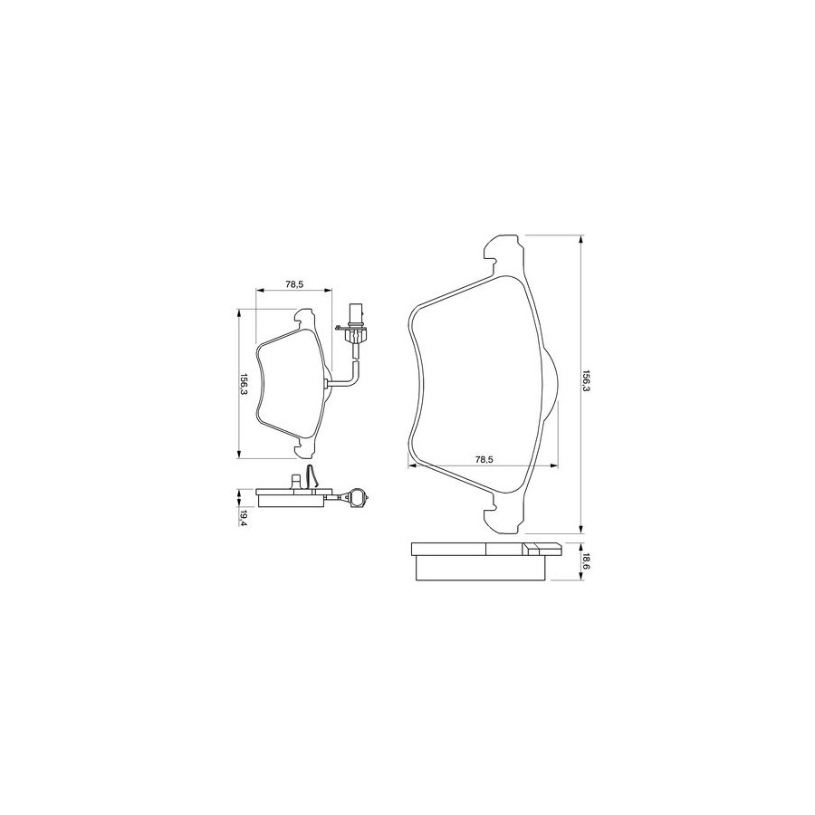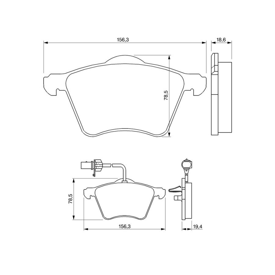 braking System ATE Wear Warning Contact Incl. wear warning contact With integrated wear sensor Content Set (4 brake pads per axle) Assembly Front Material Low-Metallic Supplementary Article/Info 2 With anti-squeak plate With piston clip Part number of recommended accessories 1 987 474 175 1 987 474 483 1 987 474 395 WVA Number 23419 Inspection Tag ECE-R90 Warranty 2 years Height [mm] 78,7 Width [mm] 156,3 Thickness [mm] 18,5 Product must be determined by vehicle or engine Similar products of other manufacturers