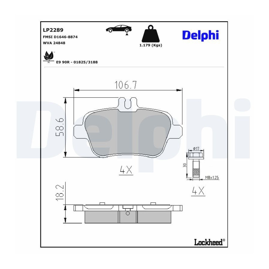 Brake pad set, disc brake LP2289 Delphi
