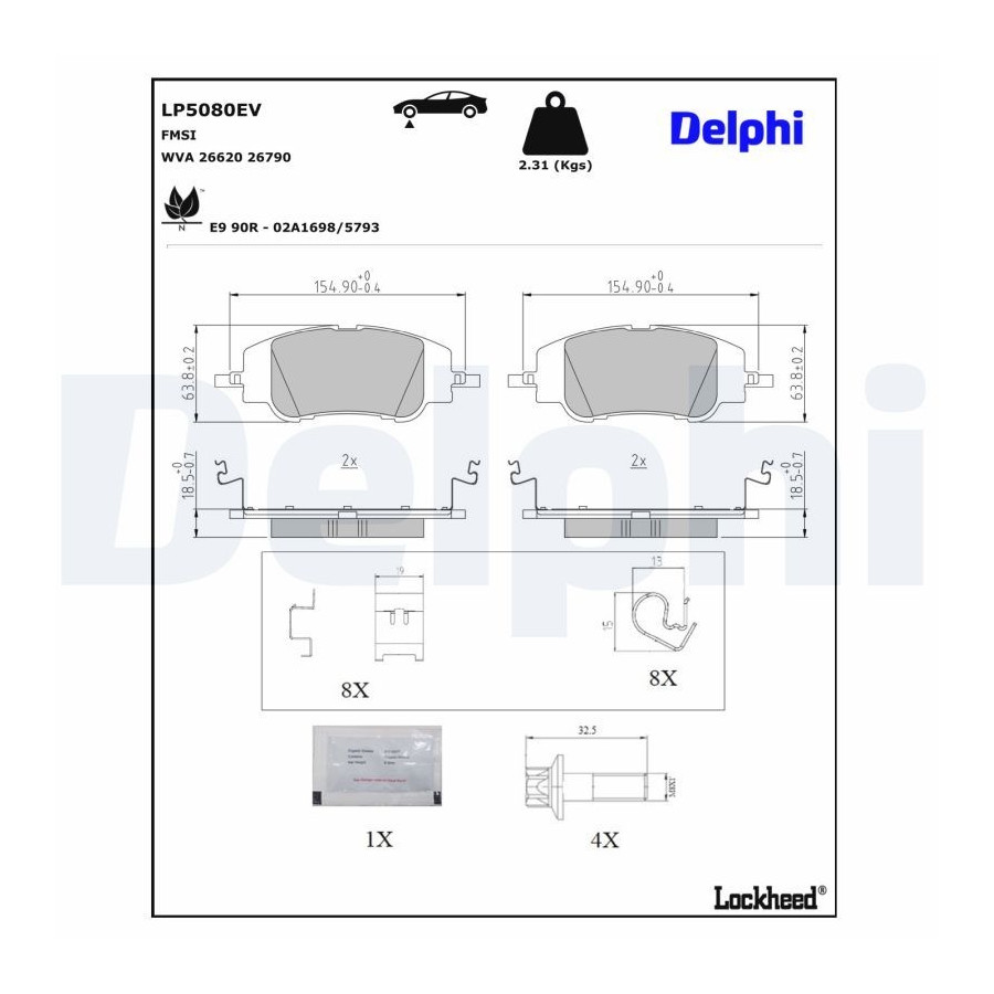 Brake pad set, disc brake LP5080EV Delphi