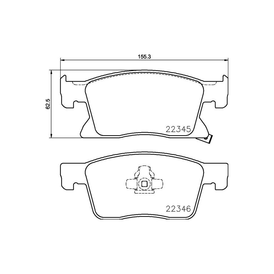 braking System Teves Wear Warning Contact With acoustic wear warning Content Set (4 brake pads per axle) Supplementary Article/Info 2 With piston clip With anti-squeak plate Supplementary Article/Supplementary Info With accessories WVA Number 22345 22346 Warranty 2 years Height [mm] 63 Width [mm] 155 Thickness [mm] 19 Number of wear indicators [per axle] 2 Similar products of other manufacturers