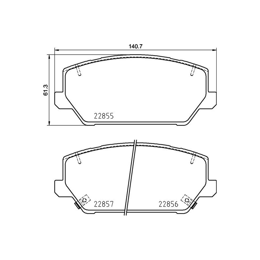 braking System Galfer Wear Warning Contact With acoustic wear warning Content Set (4 brake pads per axle) Supplementary Article/Info 2 With anti-squeak plate Supplementary Article/Supplementary Info With accessories WVA Number 22855 22856 22857 Warranty 2 years Height [mm] 61 Width [mm] 141 Thickness [mm] 20 Number of wear indicators [per axle] 2 Similar products of other manufacturers