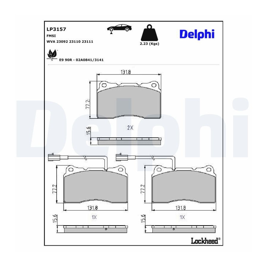 JEU DE PLAQUETTES DE FREIN LP3157 Delphi