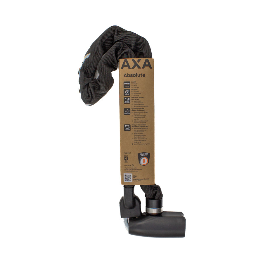 The AXA Absolute 90/8 is a handy chain lock, specially developed to secure your bicycle when parking for short to medium periods or when used as a second lock.